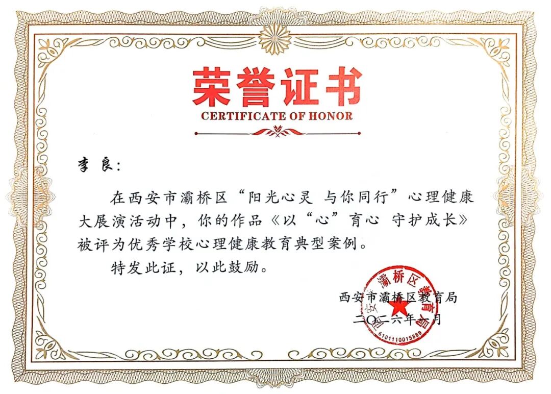 学校德育主任李良总结报送的学校心理工作综述《以“心”育心 守护成长》荣获典型案例类三等奖
