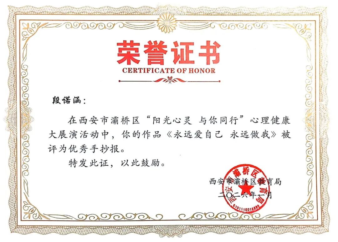 每一项荣誉,既是对过去的肯定,更是对未来的鞭策。五环中学将继续深化心理健康教育,营造更加健康、支持、温暖的校园心理环境,让每一位学生都能在关注与陪伴中,成长为内心有力量、生活有阳光的强国之才。
