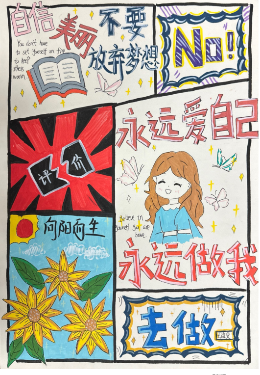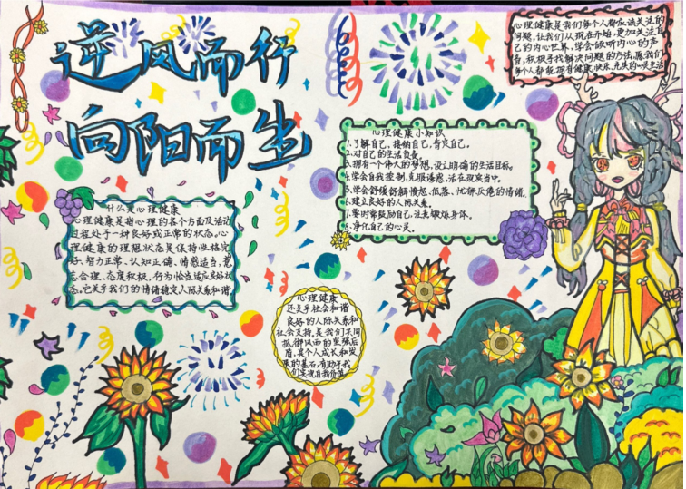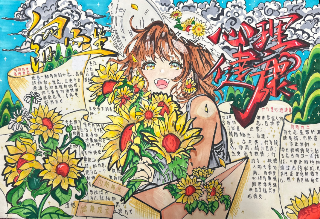 创作“阳光心灵”手抄报,引导广大学生进一步重视自我心理,自觉运用心理知识,调节情绪,始终保持阳光心态。