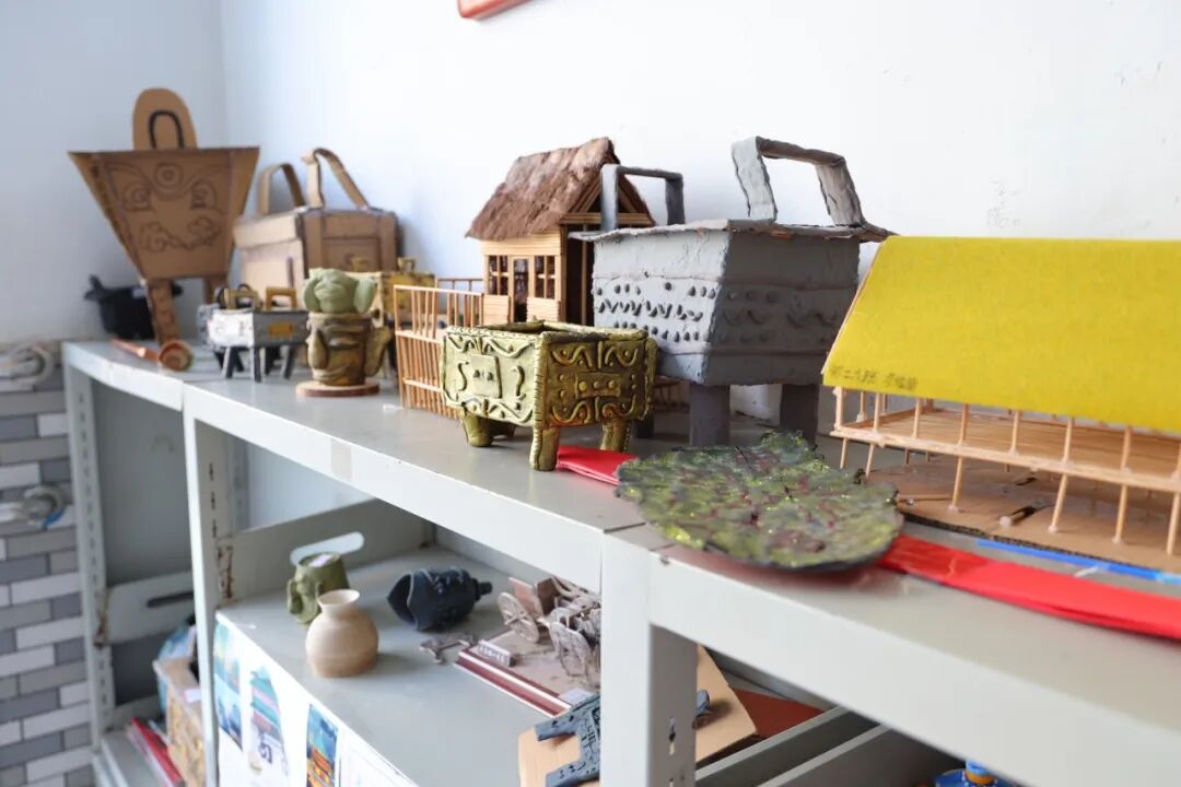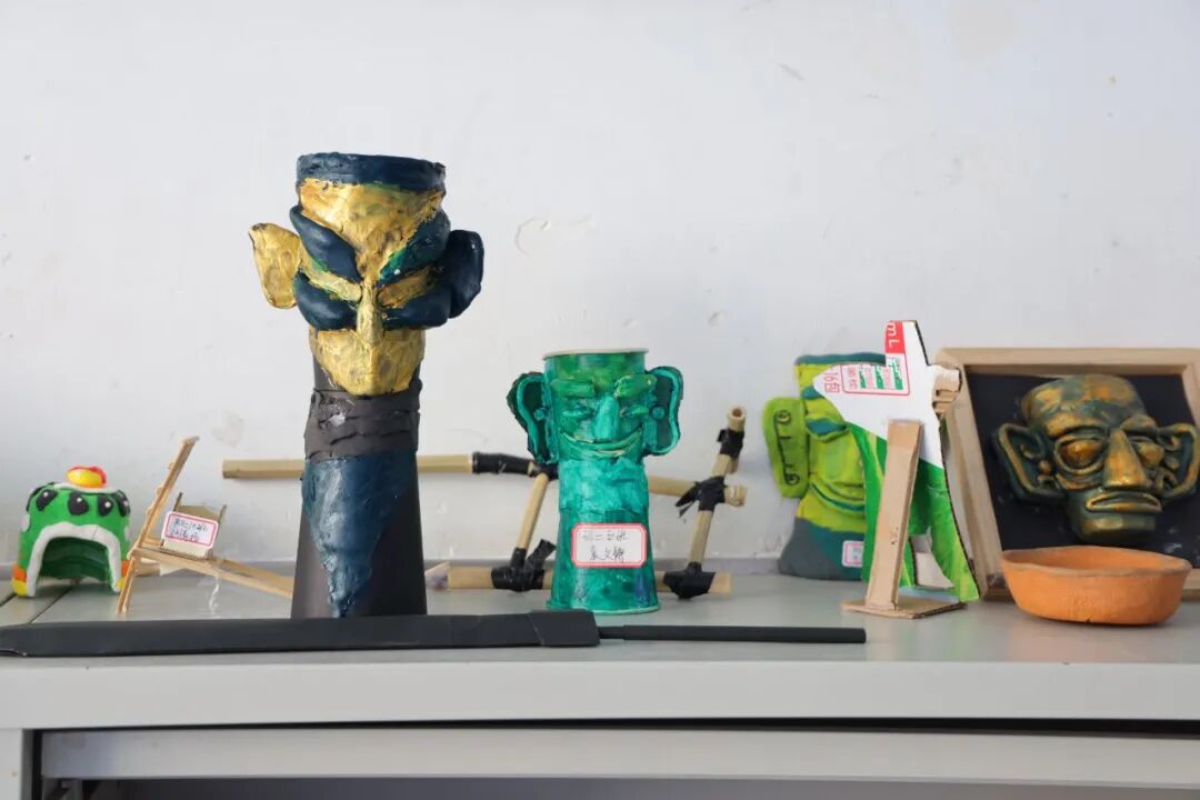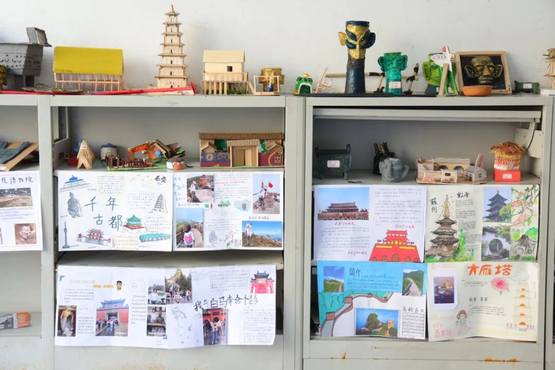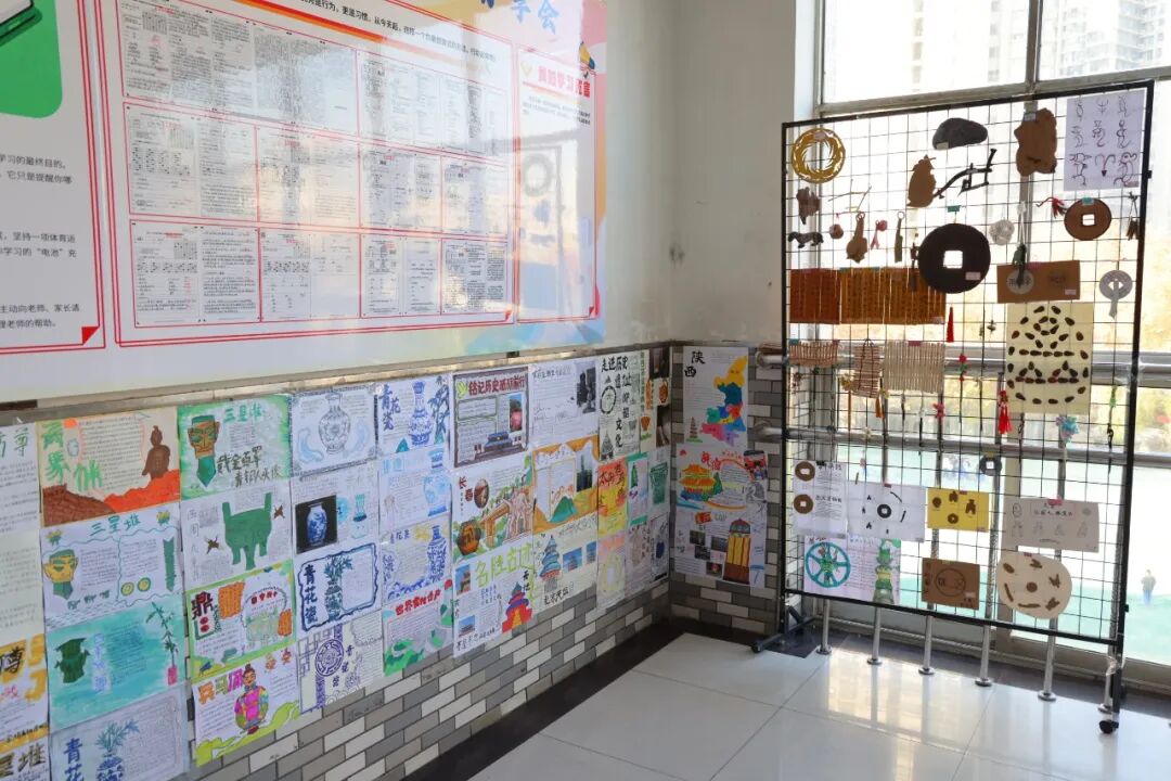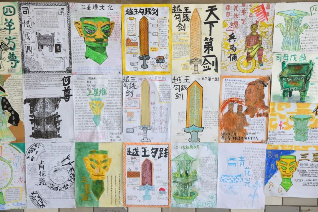 从源远流长的甲骨文竹简,到古香古色的簪钗步摇;从气势恢宏的青铜重器,到精致有趣的民居模型,同学们化身“工匠”,用巧手还原千年风华。更有三百份手抄报,从仰韶之光到三星堆之谜,从半坡遗迹到故城市井……色彩斑斓间,历史不再是枯燥的文字,而是触手可及的温度与色彩。