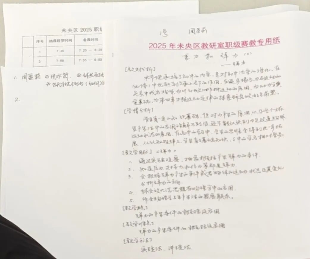 学校根据教师职级与发展需求,分层设计赛教内容。职级赛教侧重教学经验沉淀,要求教师围绕“大单元教学”设计课例,全员职级课例展示推动新课标落地,要求教师结合学科核心素养创新教学方法。