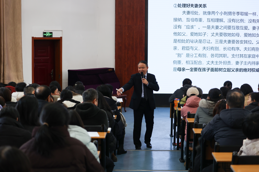 学校特邀中学高级教师,陕西省家庭教育专业委员会秘书长,人社部全国高级家庭教育指导师,“碑林好家长”家庭教育平台创始人赵江社老师做了题为《解码亲子沟通:构建新时代和谐亲子关系》的专题报告。赵老师结合自身丰富的的教育经验,从家庭教育特点、家庭教育常见的问题逐一提出了切实可行的应对策略,他建议家长们要树立正确的教育观念,尊重孩子的个性和兴趣爱好,学会倾听孩子的心声,加强与孩子的沟通交流,建立平等、和谐、信任的亲子关系。