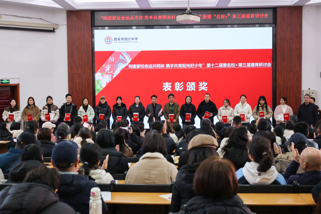 为深入落实立德树人根本任务,提升德育队伍专业素养和家庭教育指导能力,加强家校合作水平,探索契合新时代学生成长需求的育人路径,优化和提升学生发展环境,促进学生快乐学习、健康成长、全面发展。1月10日,西安市阳光中学举办了“构建家校命运共同体 携手共育阳光好少年”第十二届暨“名校+”第三届德育研讨会。雁塔区教育局政工科姚晖科长、西安市阳光中学王化龙书记、张军学校长、李春侠副校长、王甲副校长,78中学政教处刘欣彬主任、薛瑛副主任,以及深耕德育一线的全体班主任和200余位学生家长代表共同参会。