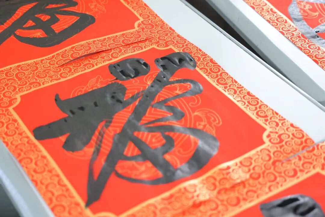与此同时,墨香与画意也在校园内流淌。书法速写社团的同学们铺纸研墨,挥毫泼墨书写春联,提前感受年味。