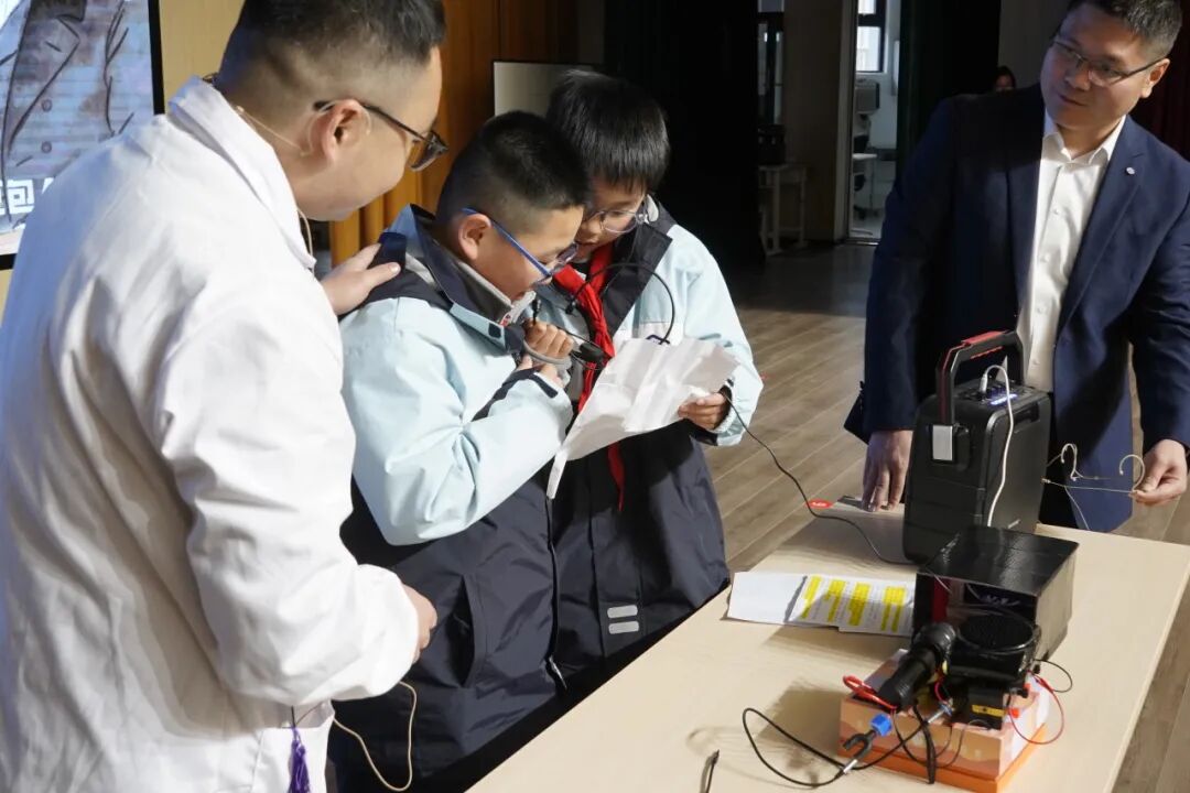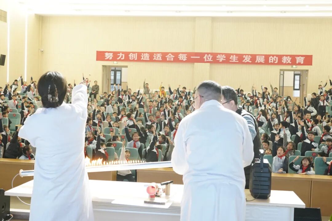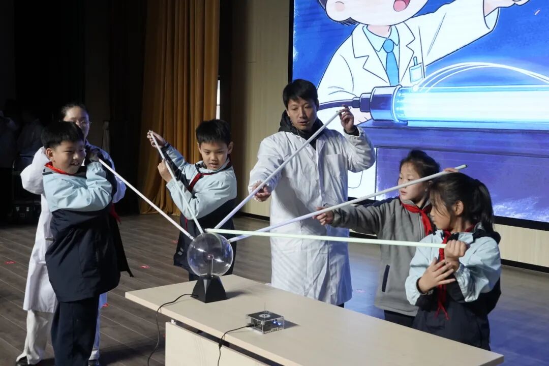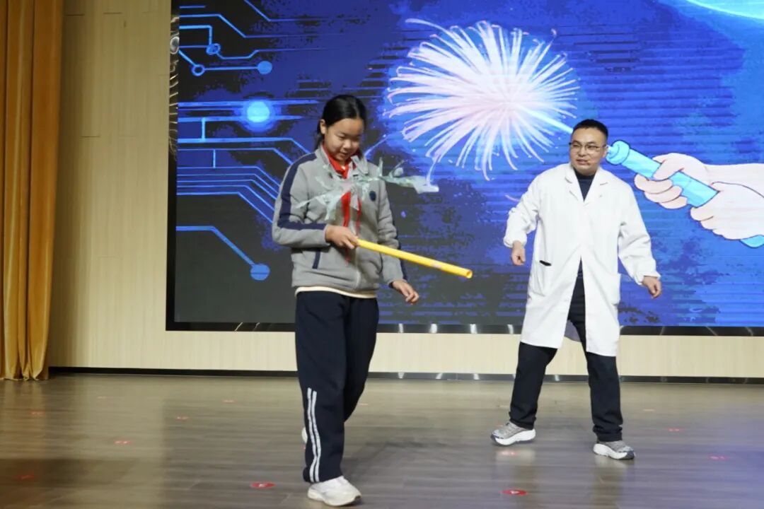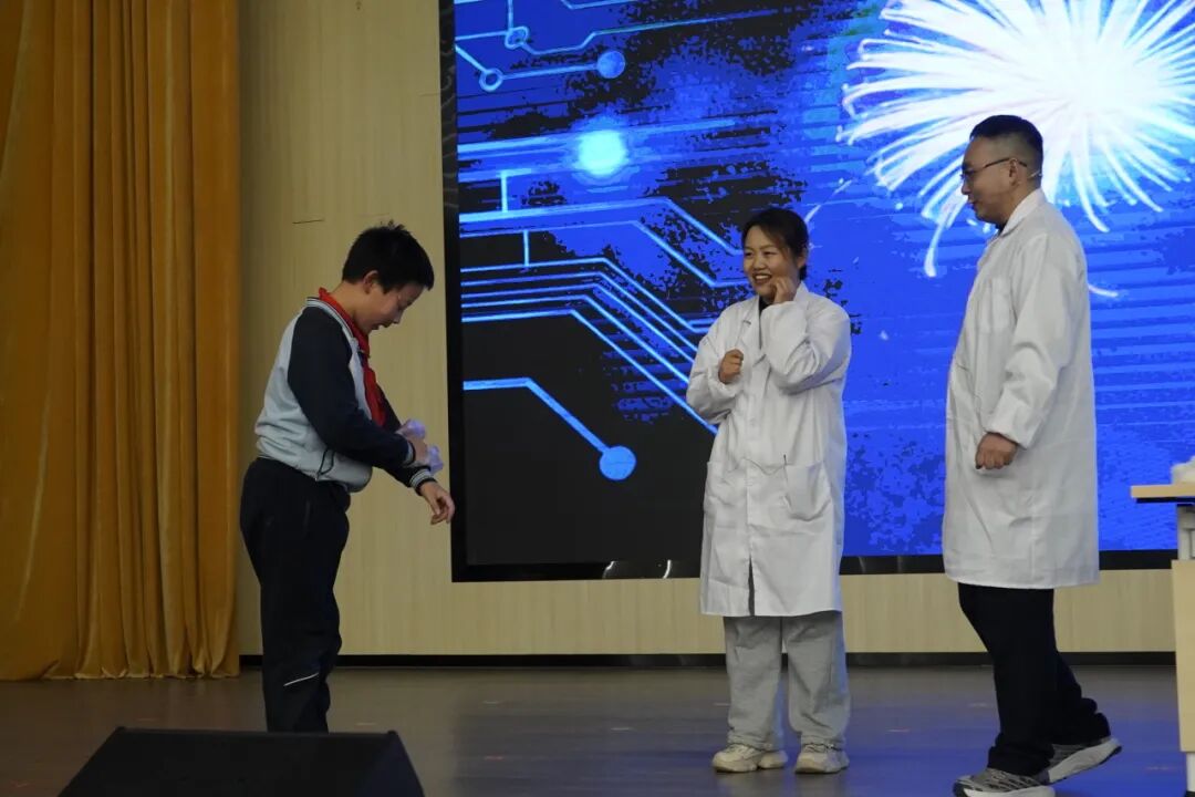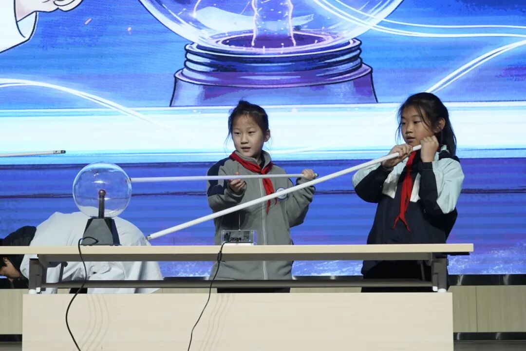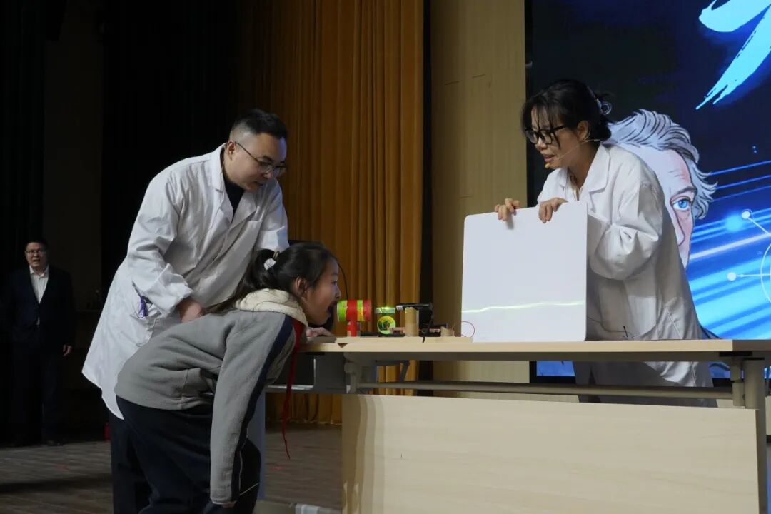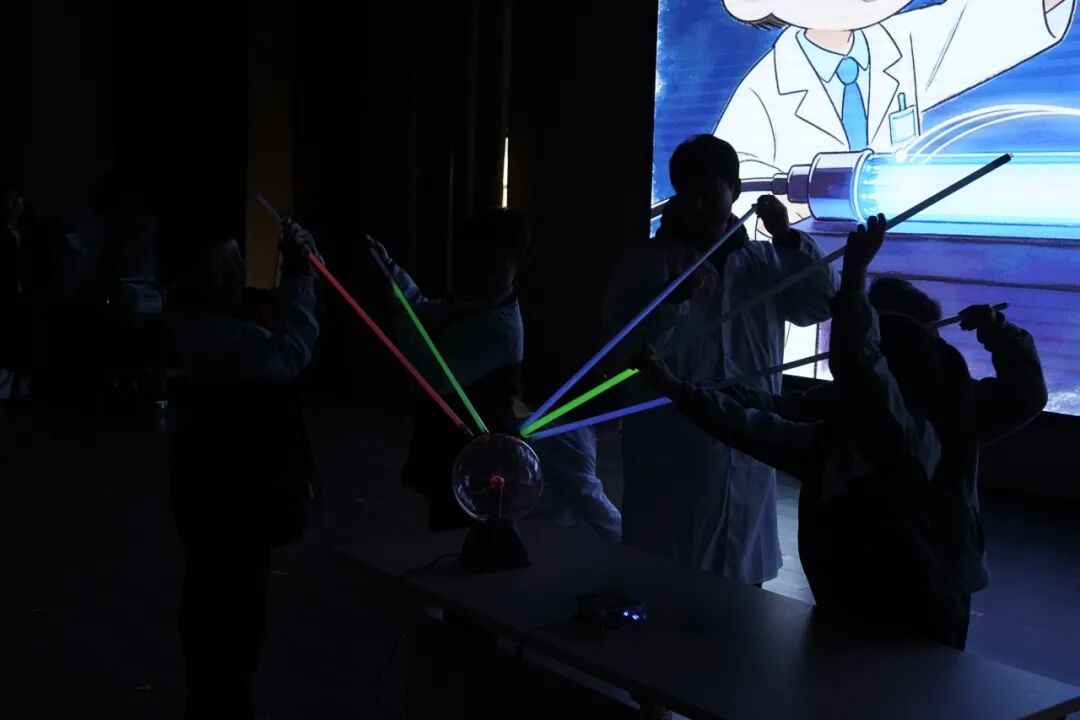 互动环节中,同学们亲身参与,体验了声光融合的奇妙现象,神奇的科学现象让同学们大开眼界。