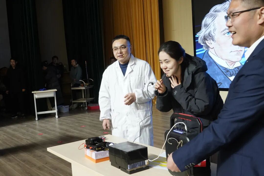 进入“电与磁的奇妙世界”,陈睿琪老师与温伟波老师通过《隔空点灯》实验,见证了灯泡在没有电线连接的情况下被点亮的神奇瞬间,展示了电磁场的力量,揭开了电磁感应的神秘面纱。