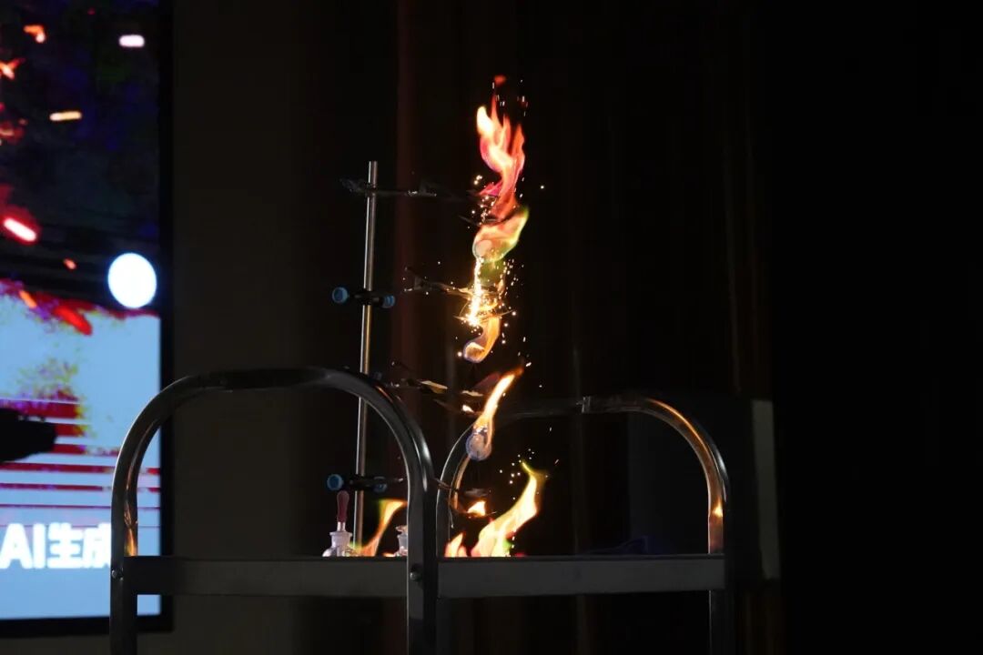 最后一篇章,同学们共同走进了绚丽多彩的化学世界。在李润泽老师的《焰色反应》实验中,不同金属盐在火焰中绽放出独特的光芒,犹如一场火焰中的色彩魔法。