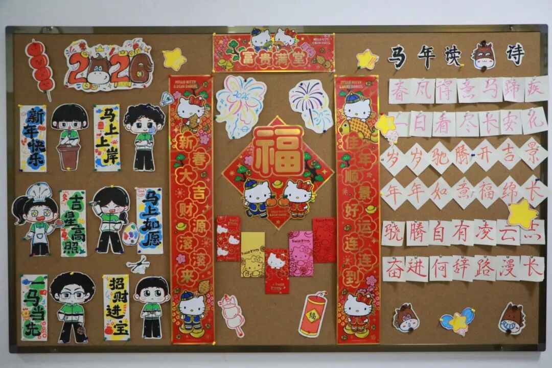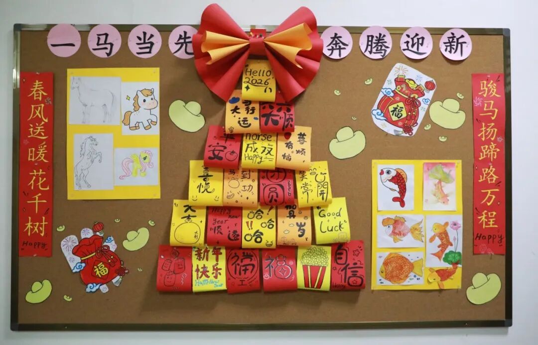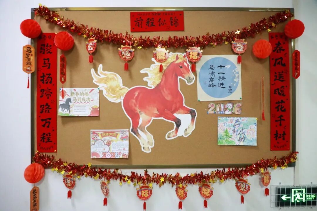 一面面展板,是青春的缩影,是梦想的载体,更是各班“一马当先”精神的生动诠释。同学们以创意勾勒初心,用拼搏书写韶华,将对新年的期许与班级的凝聚力尽数融入每一处设计。本学期的班级文化展板之旅虽已落幕,但这份向上向善、奋勇争先的力量永不退场,将伴随全体同学奔赴新的征程。愿大家皆能如奔涌骏马,带着这份热忱与勇气,在新的一年里乘风破浪、逐梦前行,让青春在不懈奋斗中绽放璀璨光彩!