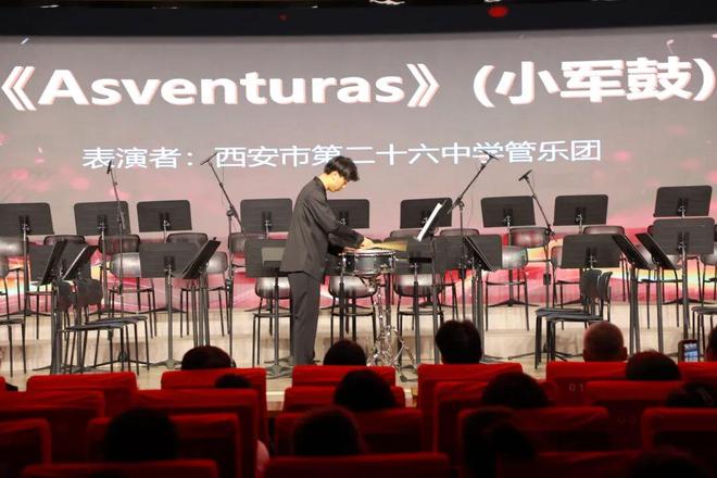 意为“冒险”的小军鼓独奏作品,以丰富多变的节奏型和极强的技巧性著称。二十六中学的演奏者凭借精准的节拍控制和饱满的表现力,将小军鼓的灵动与力量展现得惟妙惟肖,每一次鼓点都敲击在观众的心弦上。