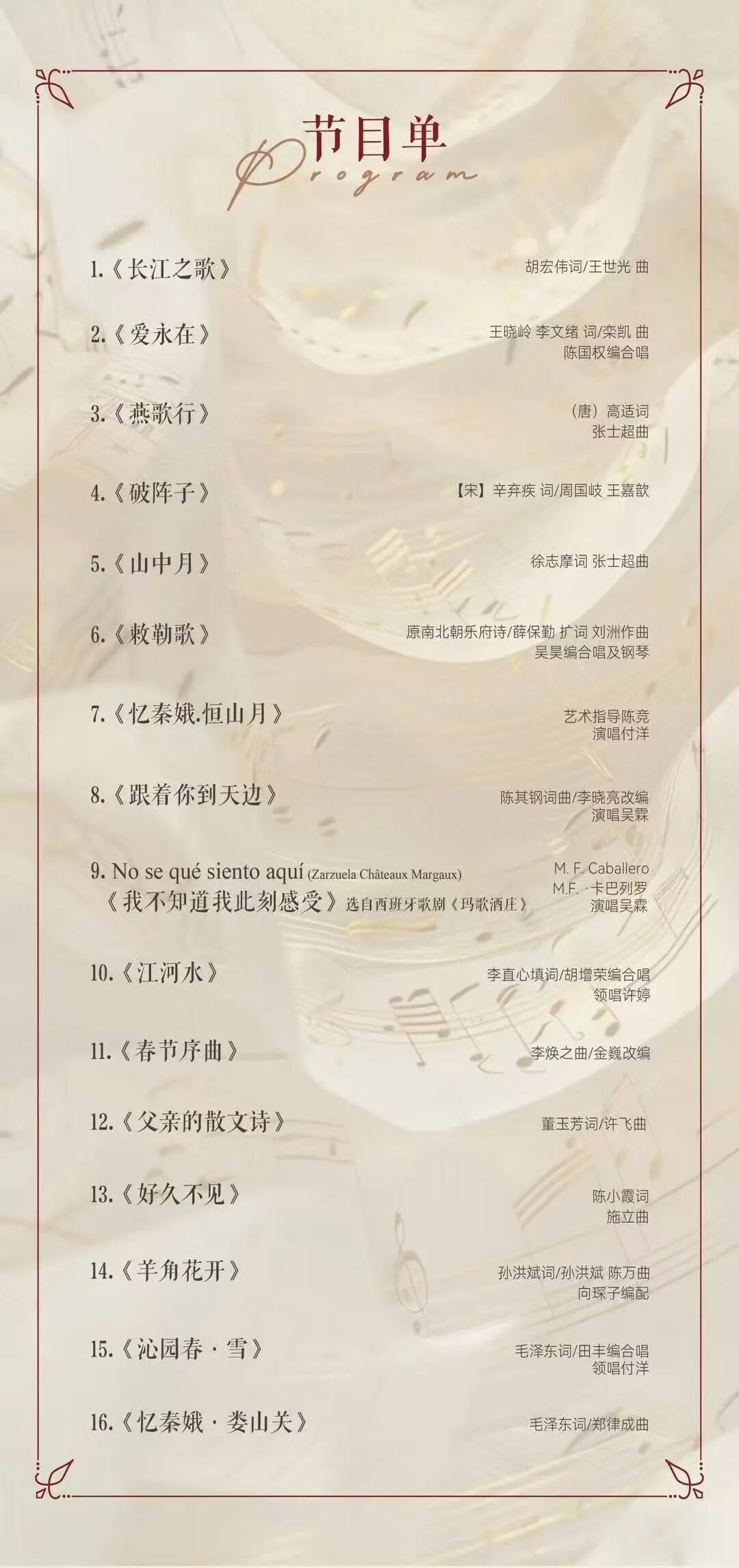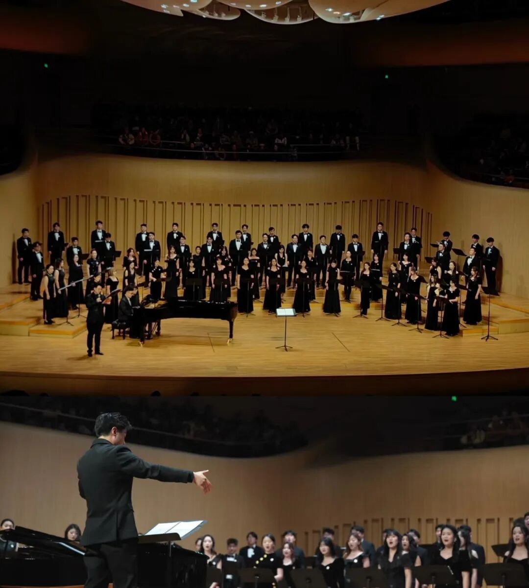 节目单上的每首歌,都藏着不一样的“宝藏”,把三种文化的力量,唱进了大家心里:《长江之歌》以豪迈声部交融,唱响守护山河的家国情怀,《敕勒歌》借现代编排让北朝民歌焕发新生,展现中华优秀传统文化魅力;《沁园春・雪》以磅礴合唱演绎先辈豪情,传递革命文化精神。从《燕歌行》的唐韵悠悠到《忆秦娥・娄山关》的史诗铿锵,专业合唱团的歌声,让同学们真切触摸到音乐与文化的紧密联结。