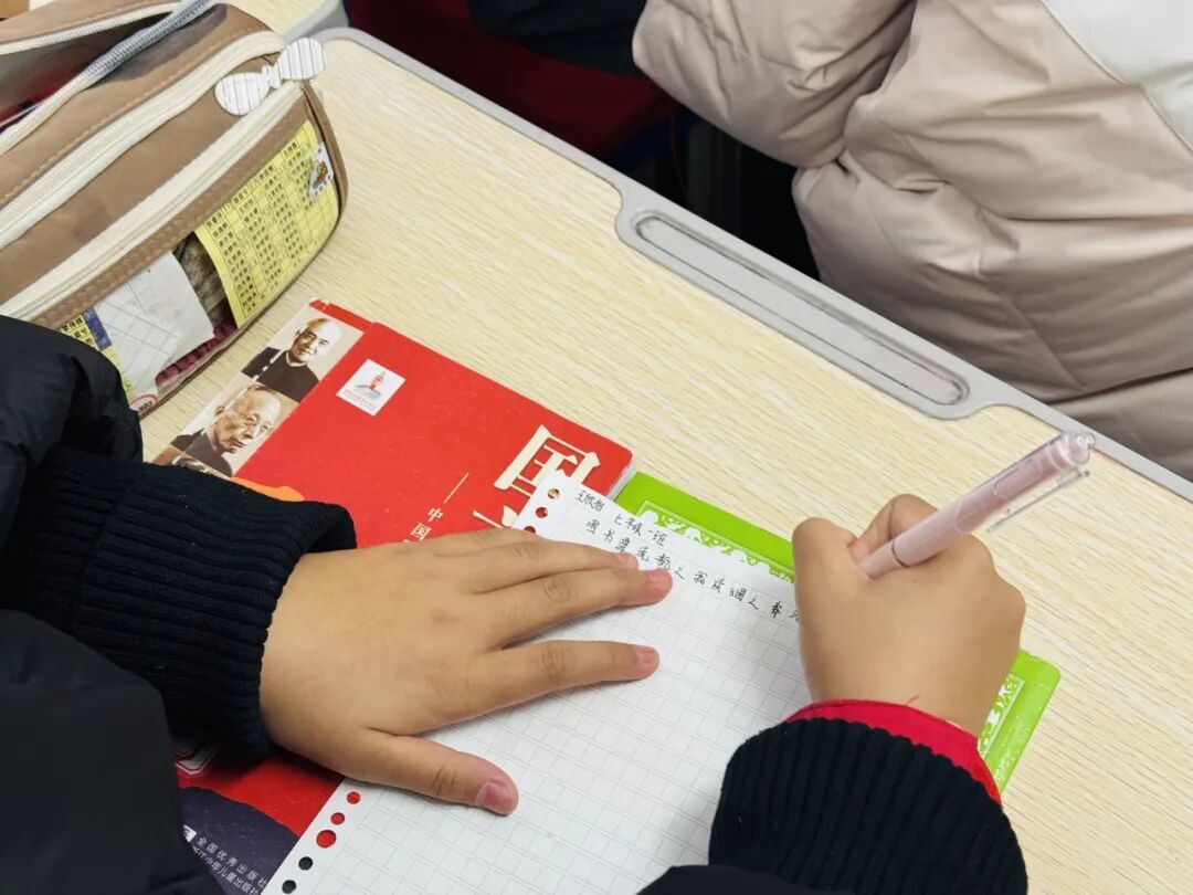 此次活动是七年级语文备课组深耕阅读教学、助力学生核心素养提升的重要举措。学校精心挑选的阅读书目,《把栏杆拍遍》以细腻的笔触勾勒出文人墨客的家国情怀,《国之脊梁》则用详实的史料展现了“时代楷模”的责任担当,两本书籍既兼具文学底蕴,又饱含精神力量,为同学们的阅读与创作提供了丰富的素材。