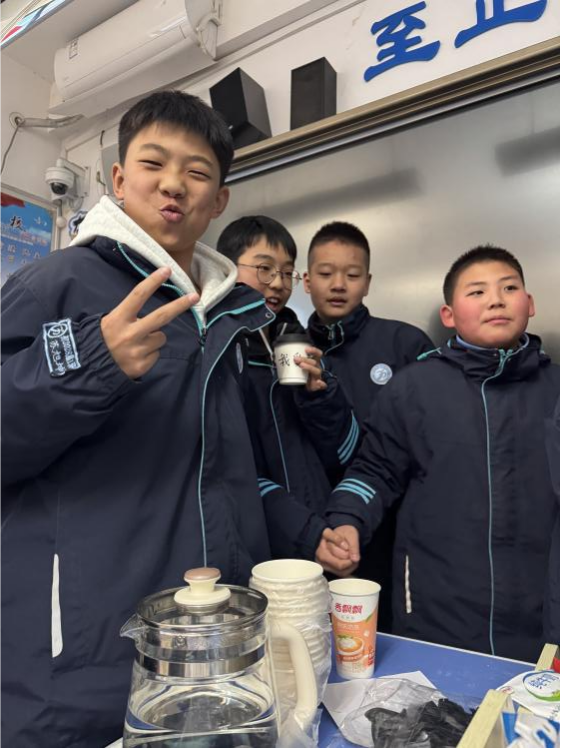 窗外雪花纷飞,窗内茶香暖融,这场冬日里的DIY活动,为同学们带来了意外的温暖之喜。大家在活动中自由组队,默契配合,那些平时交流不多的孩子,在共同熬煮、调味、创意的过程中变得活跃而亲切。当大家举起一杯杯亲手完成的奶茶时,脸上的笑容比任何话语都更能传递心中的自豪和集体的温暖。