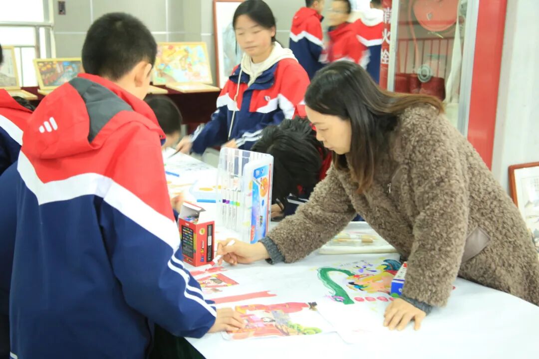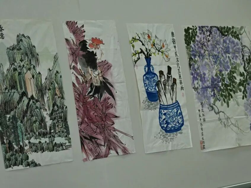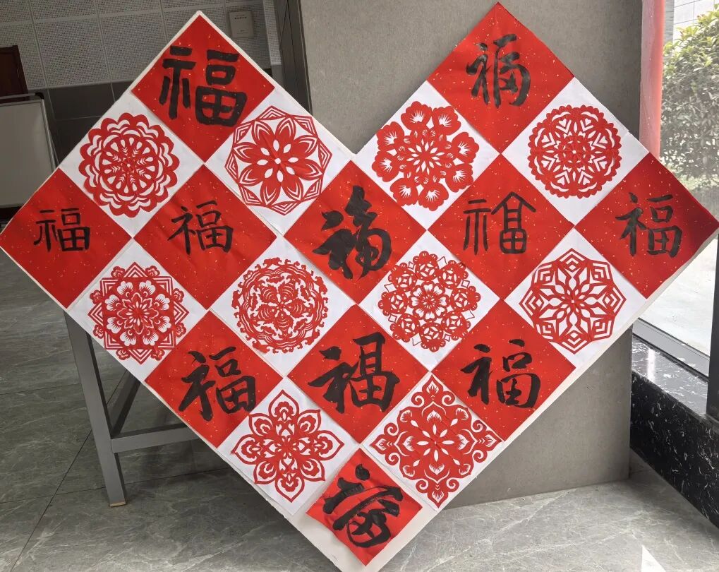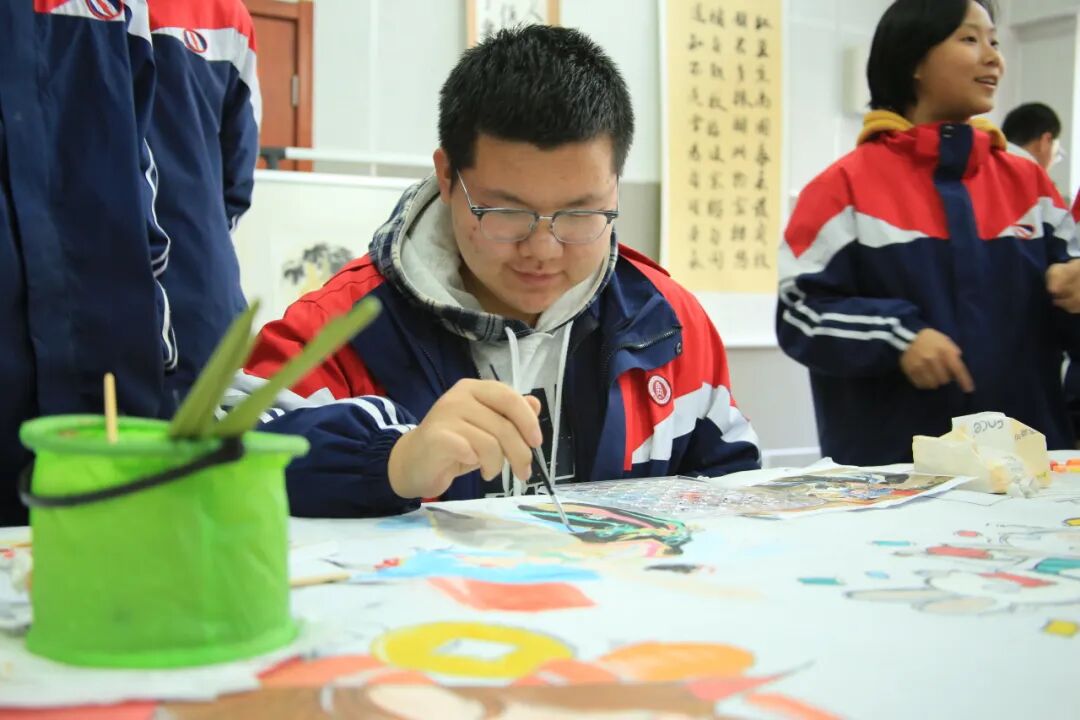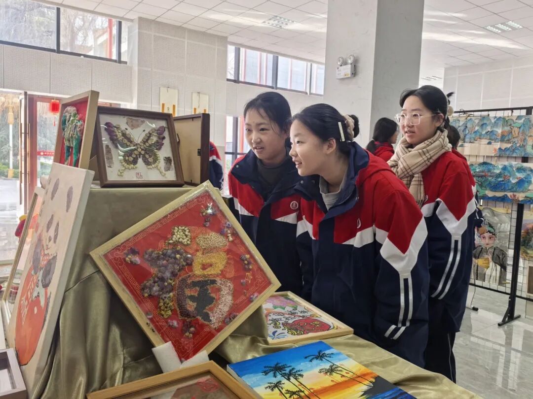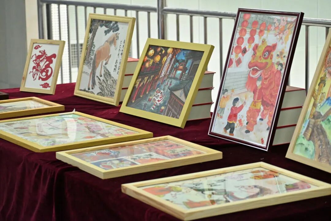 步入展区,一幅幅精美画作映入眼帘。这些作品将创意与传统书画风格有机结合,展现了学生们的青春活力和审美能力。书法作品笔墨流畅、风格鲜明,字里行间传递着学校 “博爱、责任、自强不息” 的精神;剪纸作品构思精巧,体现了传统与现代审美的融合;绘画及创意画等各类特色作品以校园生活为素材,记录了同学们的日常与成长,兼具传统韵味和时代特色。