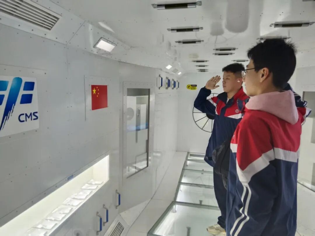 冬⽇暖阳洒在“长安云”标志性的流线型⽩⾊建筑上,玻璃幕墙倒映着粼粼波光。尚未⼊馆,这座以“云横秦岭”为设计灵感的科技地标建筑,就已经成功吸引同学们纷纷驻⾜,举起⼿机定格这份科技与美学交融的惊艳。随着八十九学子们秩序井然地进⼊场馆,⼀场融合科学、艺术与未来职业规划体验的盛宴正式拉开帷幕。