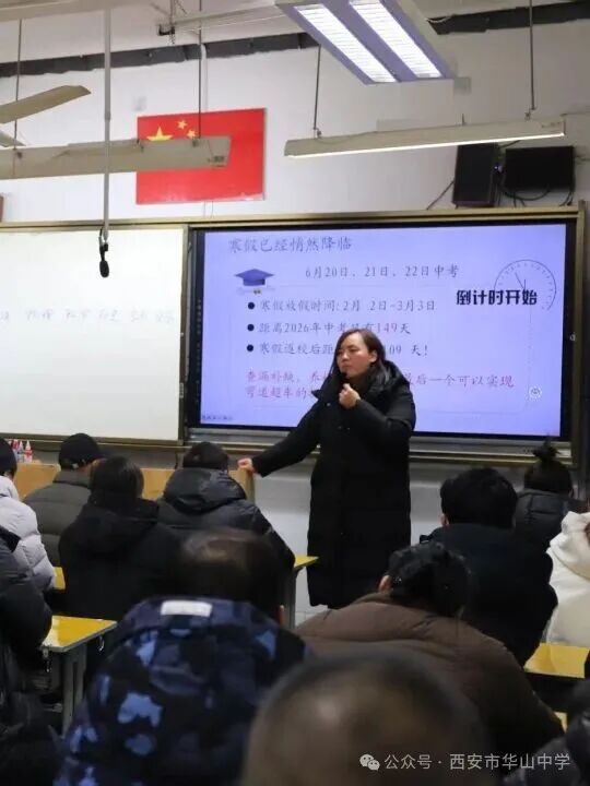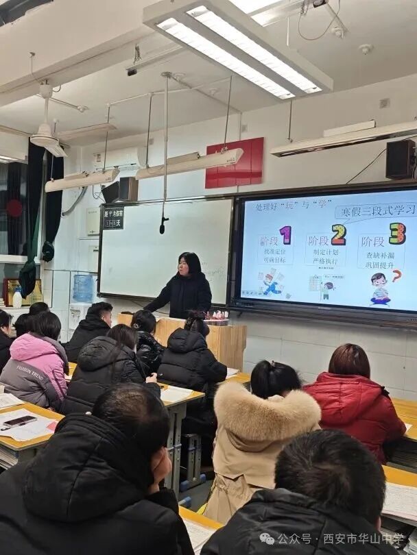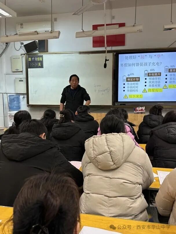 为加强家校沟通,凝聚教育合力,助力初三学子高效备战中考,西安市华山中学于2026年1月23日召开了初三年级家长会。本次会议以“精准分析、科学规划、同心护航”为主题,围绕中考政策解读、学情反馈、寒假学习与安全等关键议题,与家长进行了深入、细致的交流。