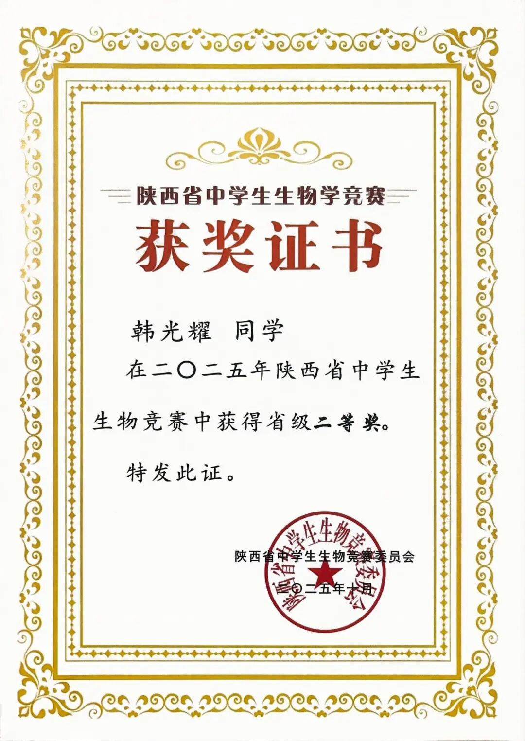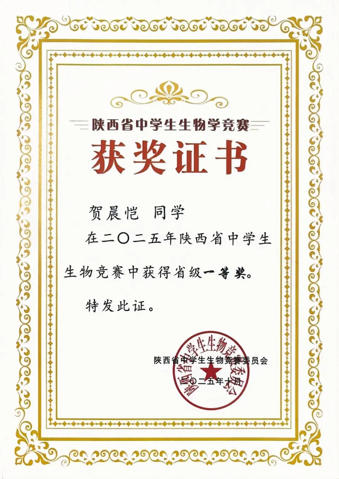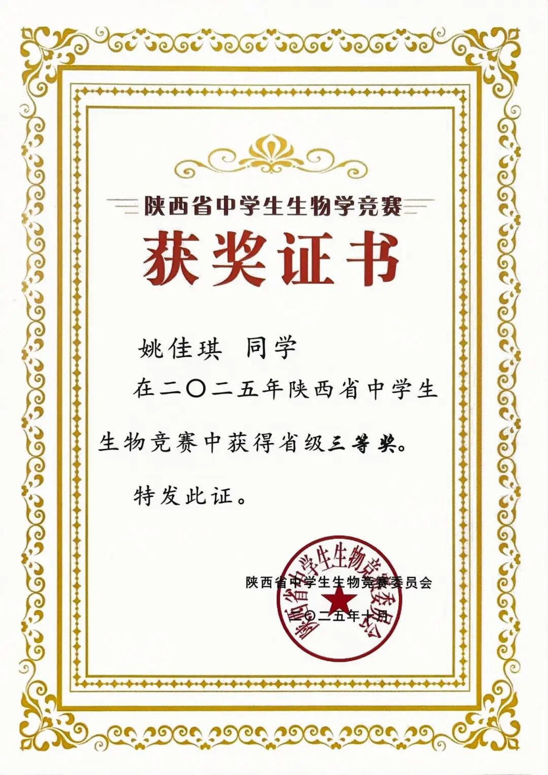 一等奖!西安市航天城第一中学学子在2025年陕西省中学生生物竞赛中斩获多项荣誉