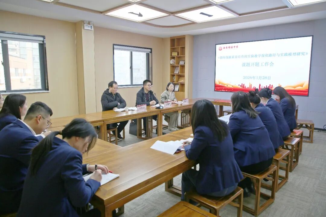 2026年1月28日,陕西省教育科学规划课题《指向创新素养培育的实验教学深化路径与实践模型研究》开题论证会在西安锦园中学召开。会议由锦园中学副校长李斌侠主持,特邀未央区教师进修学校王利锋、郑晓华、刘宗运三位专家到会指导,课题主持人康艳丽及课题组成员参会。