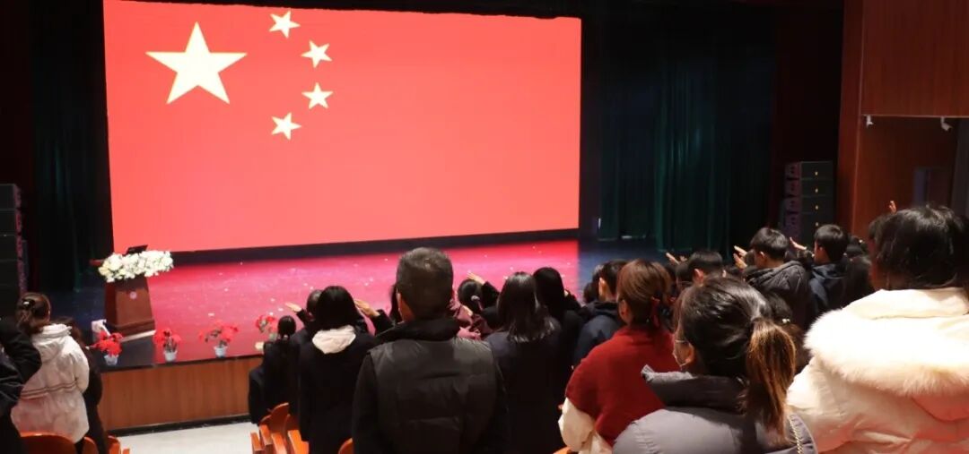 典礼在庄严的国歌声中拉开帷幕,全体师生肃立注目,爱国情、奋进心在这一刻凝聚升华。