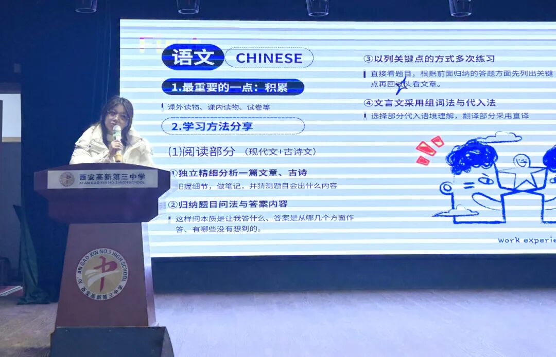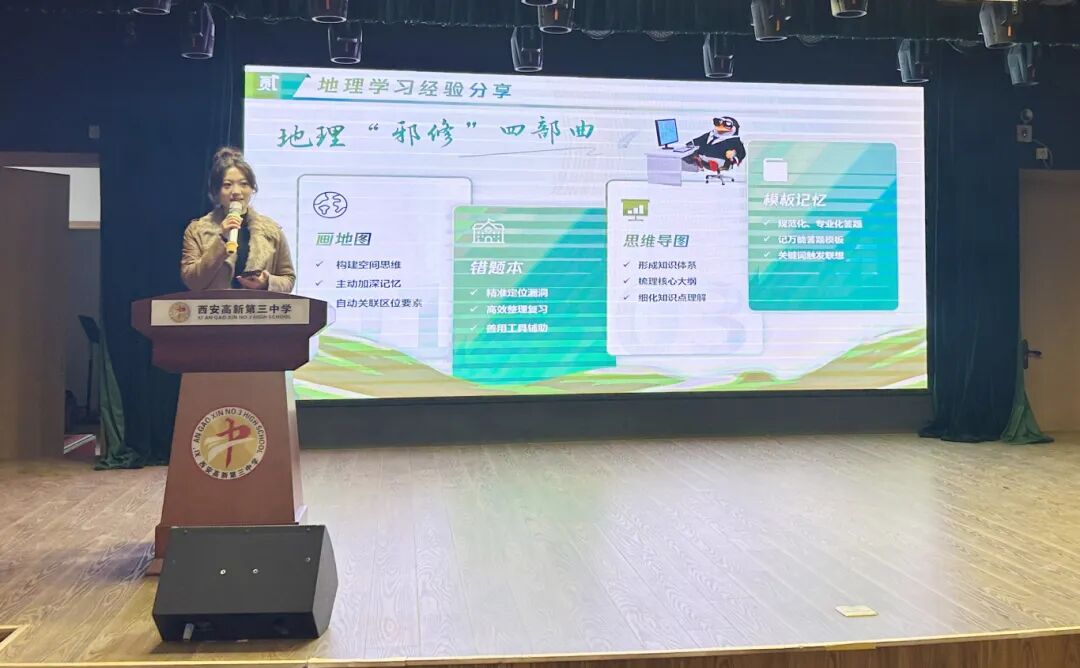 这场活动聚焦文科备考,由六位来自西北大学不同专业的校友组成的宣讲团带来。翟睿程、刘芯妙、卢佳仪、王玉雅、周欣睿、屈子寒六位同学,从象牙塔回到熟悉的教室,他们的分享兼具实用性与前瞻性。他们不仅系统介绍了西北大学的学科特色与招生政策,帮助学子们勾勒大学生活的初步轮廓,更将重点放在了高三学子最关切的实际问题上。从语文、政治、历史、地理、英语等学科的具体学习方法与复习技巧,到高三阶段如何有效管理压力、科学安排作息,再到大学丰富的社团活动与专业发展前景,他们的分享内容翔实,语言风趣。活动现场互动频频,学长学姐们用亲身经历消解了备考的焦虑,为略显沉闷的冲刺阶段注入了清新的活力与开阔的视野。