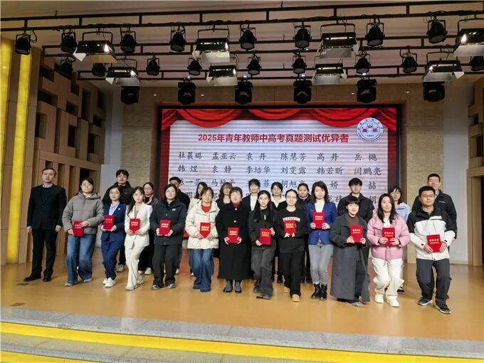 在表彰环节,刘新博、张红利两位副校长为“青年教师中高考真题测试优异者”“青年教师汇报课优秀奖”获奖教师颁奖