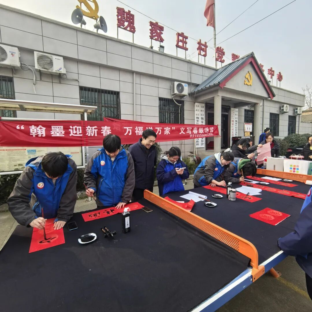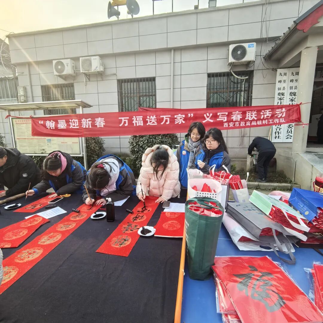 春节将至,情暖乡村。2026年2月6日上午,周至县九峰镇魏家庄村村委会院内暖意融融,墨香四溢。西安市第三十中学师生一行,在党总支书记尚学海的带领下,积极参与西安市教育局组织开展的助力乡村振兴“小葵花”暖冬行动捐赠暨“翰墨迎新春 万福送万家”活动,以笔墨传递祝福,为乡村增添浓浓年味。