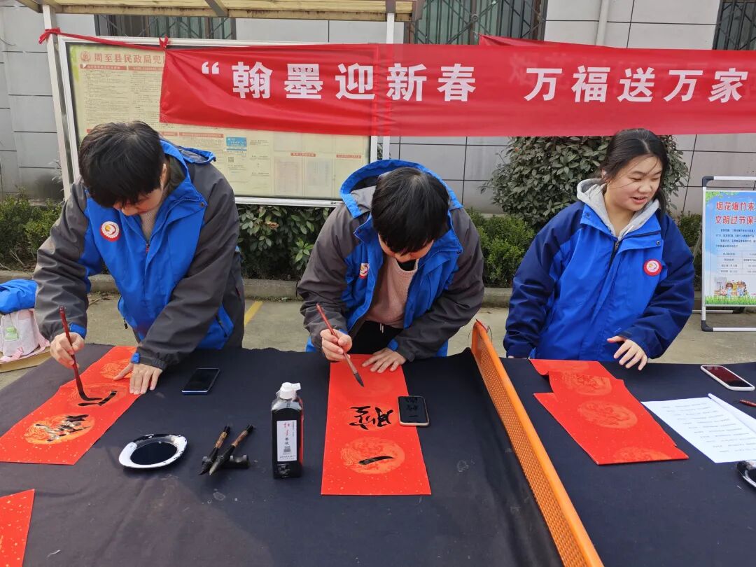 活动现场,西安市第三十中学书法社十余位学生在李明老师指导下挥毫泼墨。“龙腾虎跃人间景,鸟语花香天地春”等一副副满载祝愿的春联和“福”字不断呈现。四百余副作品成为连接城乡的温情纽带,受到村民热烈欢迎。一位婶婶手持春联连连称赞:“写得好得很!比买的更暖心!”