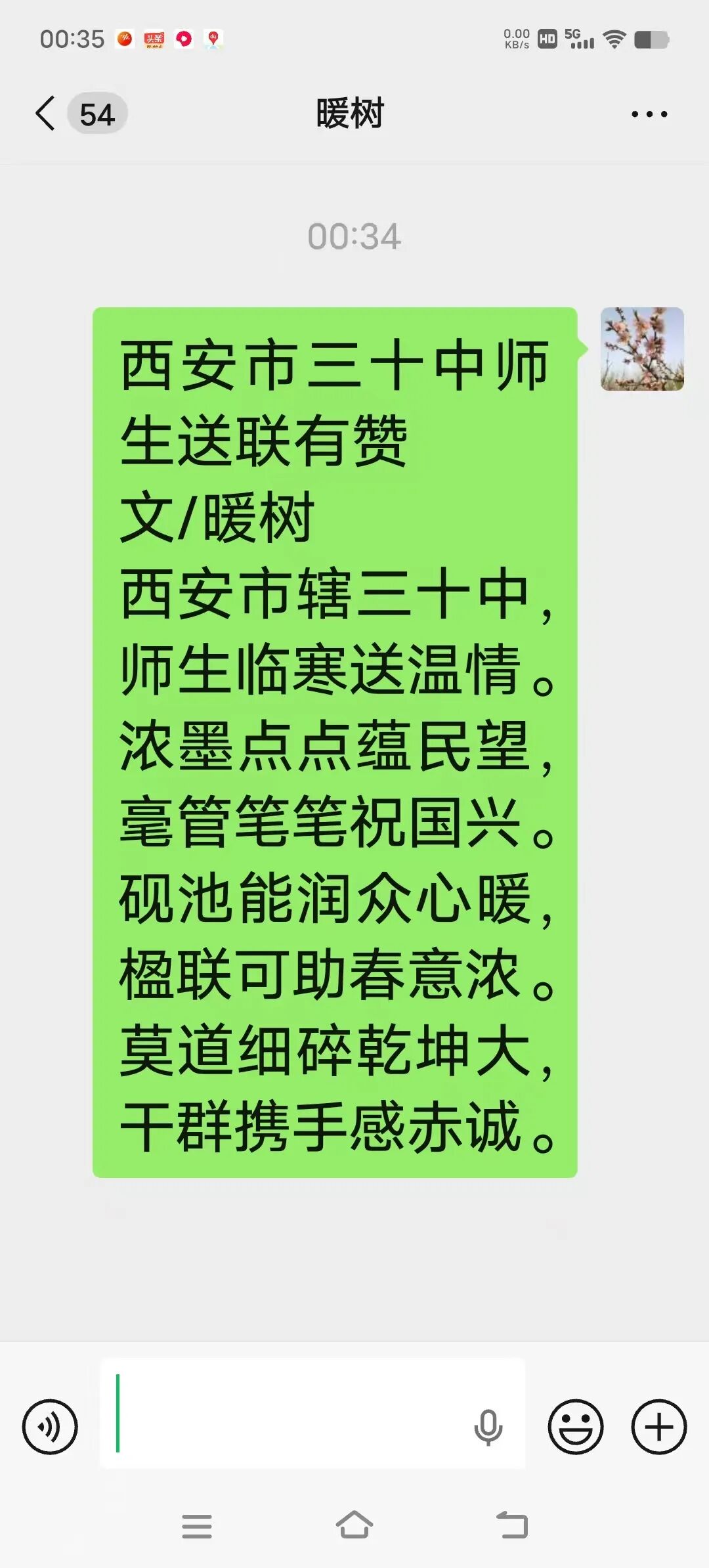 作为全国中小学中华传统文化艺术(书法)传承学校,此次活动是西安市第三十中学实践育人理念的生动体现。同学们在服务中锻炼能力,在走访参观中切身感受新农村发展成就。村民“暖树”深受感动,现场赋诗《西安市三十中师生送联有赞》以表赞誉: