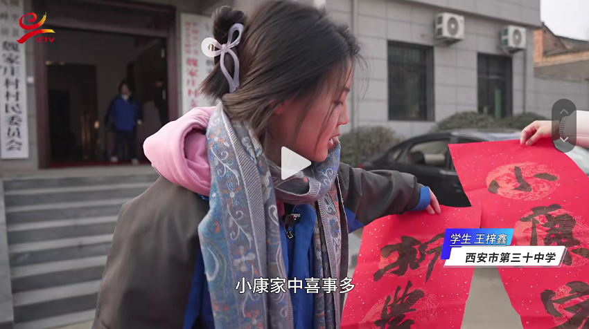 红联送福,翰墨传情。这场暖冬行动展现了西安市第三十中学学子服务社会的担当,也为新春的乡村增添了浓浓的文化年味。学校将继续秉持“书天地独美,法古今贤达”的理念,在传承中华优秀传统文化的道路上坚定前行。我们也会创造更多的机会,让学生走出课堂,走上社会,更多地参与实践活动,促进学生全面发展。