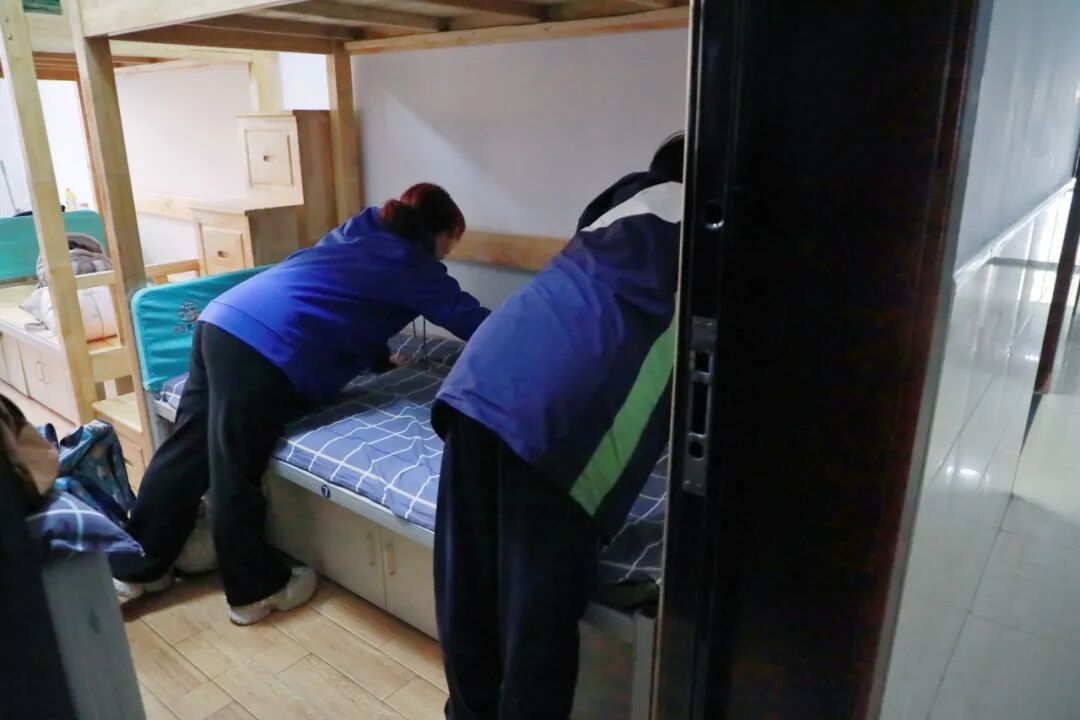 回到熟悉的宿舍,卸下一路风尘,学子们忙碌起来。铺床单、叠被褥、摆物品,认真整理着属于自己的小天地,将假期的思念与新学期的期待,都藏进这一方温馨角落。整齐的床铺,干净的桌面,不仅是对生活的热爱,更是对新学期的郑重告别与全新开启,往后的日子,这里将继续见证我们的成长与陪伴。