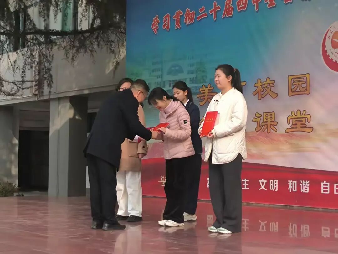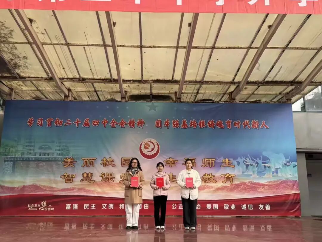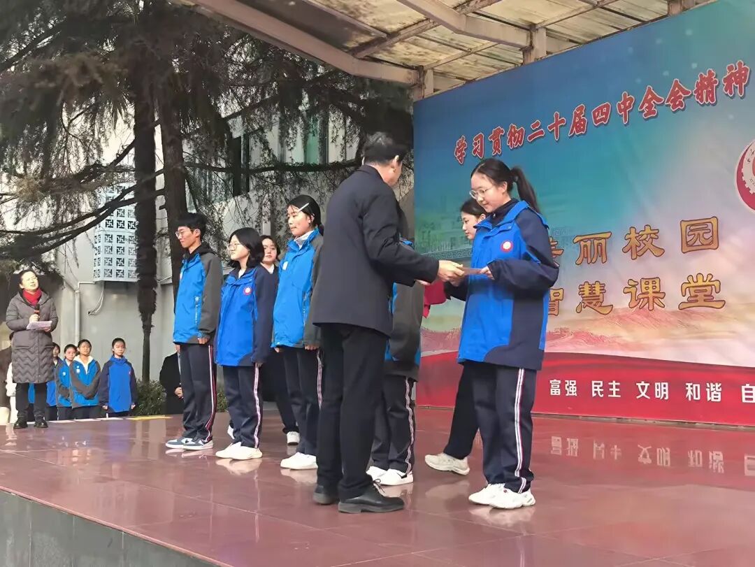 王赣萍副校长依次宣读了荣获2025-2026年度第一学期三好学生、优秀学生干部名单,以及先进班集体、优秀班主任名单,韩校长与尚书记分别为他们进行了颁奖。
