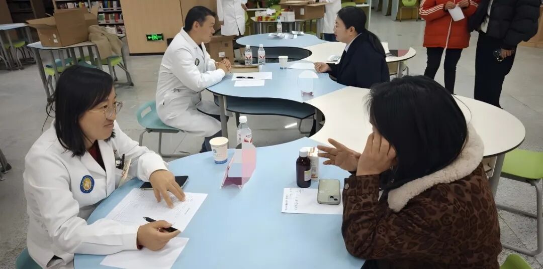 义诊现场秩序井然,暖意融融。得知消息的老师们,特别是许多受慢性病、亚健康困扰的教职工,纷纷利用课余时间前来咨询就诊。专家们耐心细致地为每一位老师进行身体检查,详细询问病史,认真分析病情,并针对个人健康状况提供专业的治疗建议和科学的保健方案。对于有需要的老师,现场还进行了免费赠药。医生们严谨的态度、精湛的医术和耐心的解答,让前来问诊的老师们倍感温暖。