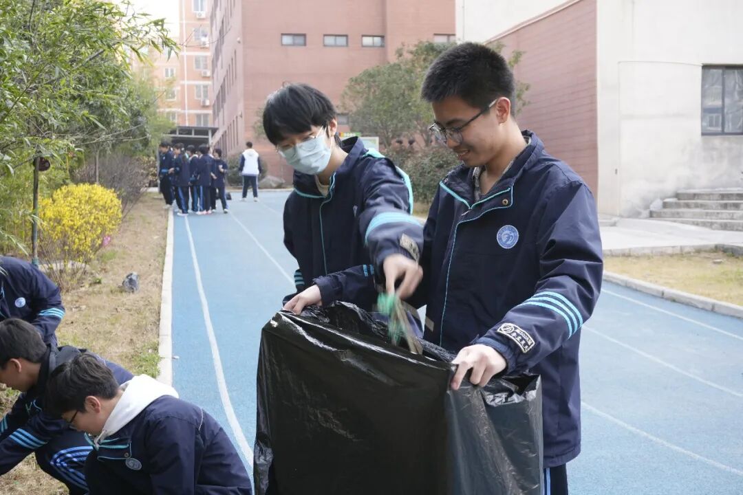 动员教育结束后,同学们迅速投入劳动。在划分好的区域里,分工协作,默契配合。