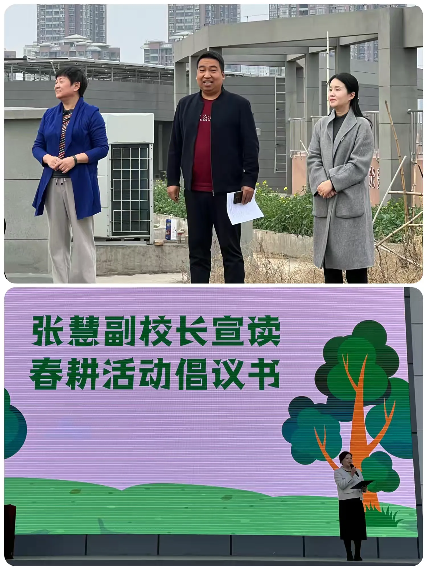 在开耕仪式上,校党总支书记段李擘鼓励同学们在劳动中涵养品格、收获成长。张慧副校长向同学们发出春耕倡议,她表示种植园既是实践乐园,也是磨练意志、团结协作的平台,期待大家播下希望、精心耕耘。杨康峰主任细致协调,保障仪式顺利进行。在校领导为各班分发种子后,马卫东校长以欢快急促的鼓声拉开了今年春耕活动的帷幕。