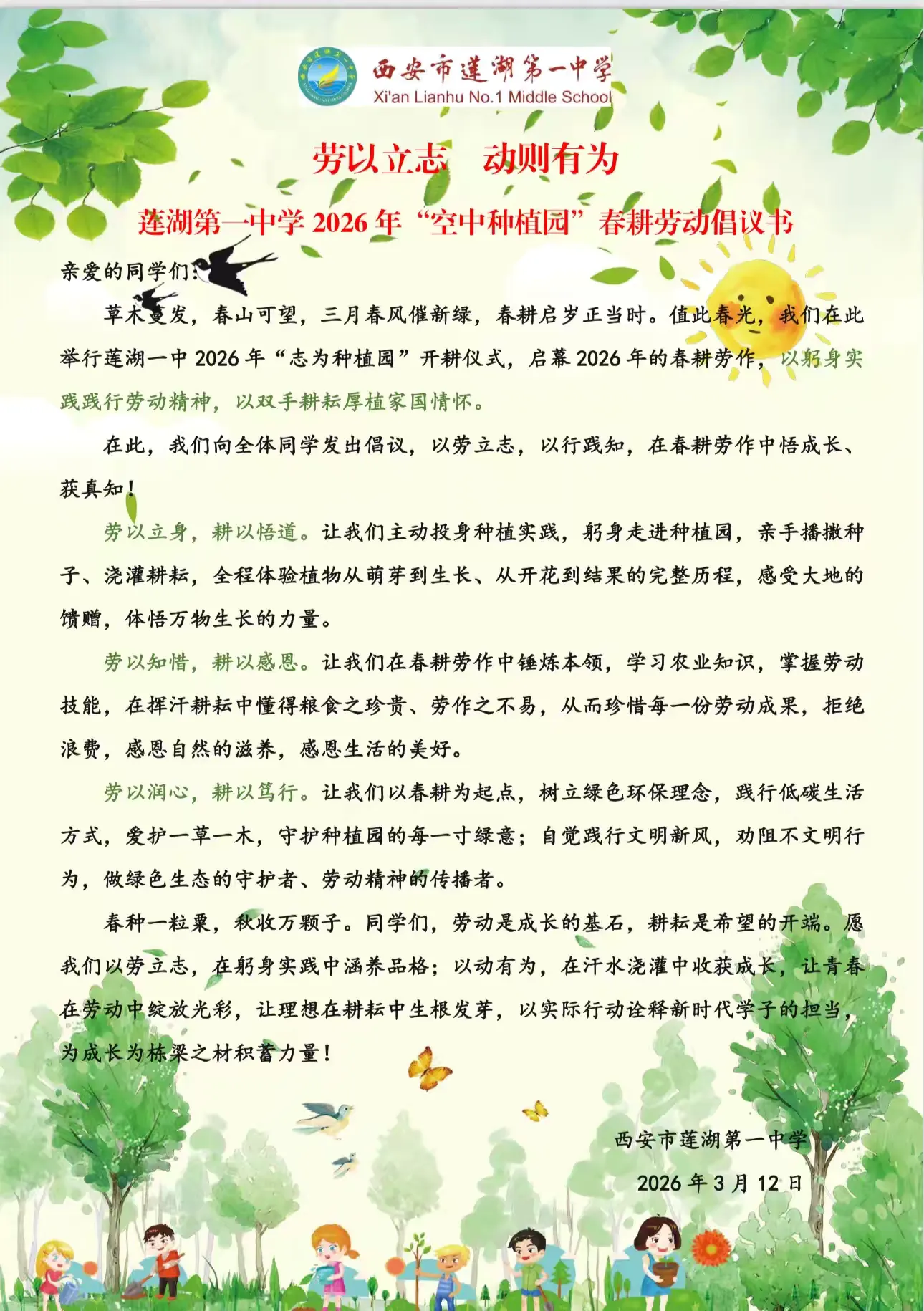 分类:校园动态 时间:2026-03-13 来源:西安市莲湖第一中学 作者:西安市莲湖第一中学