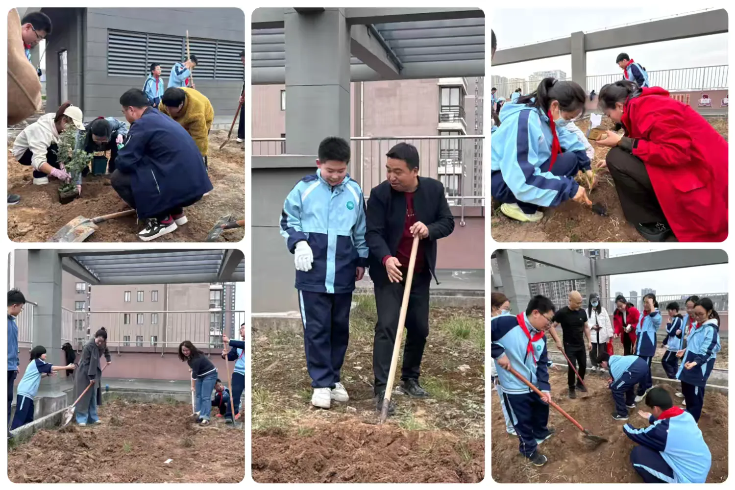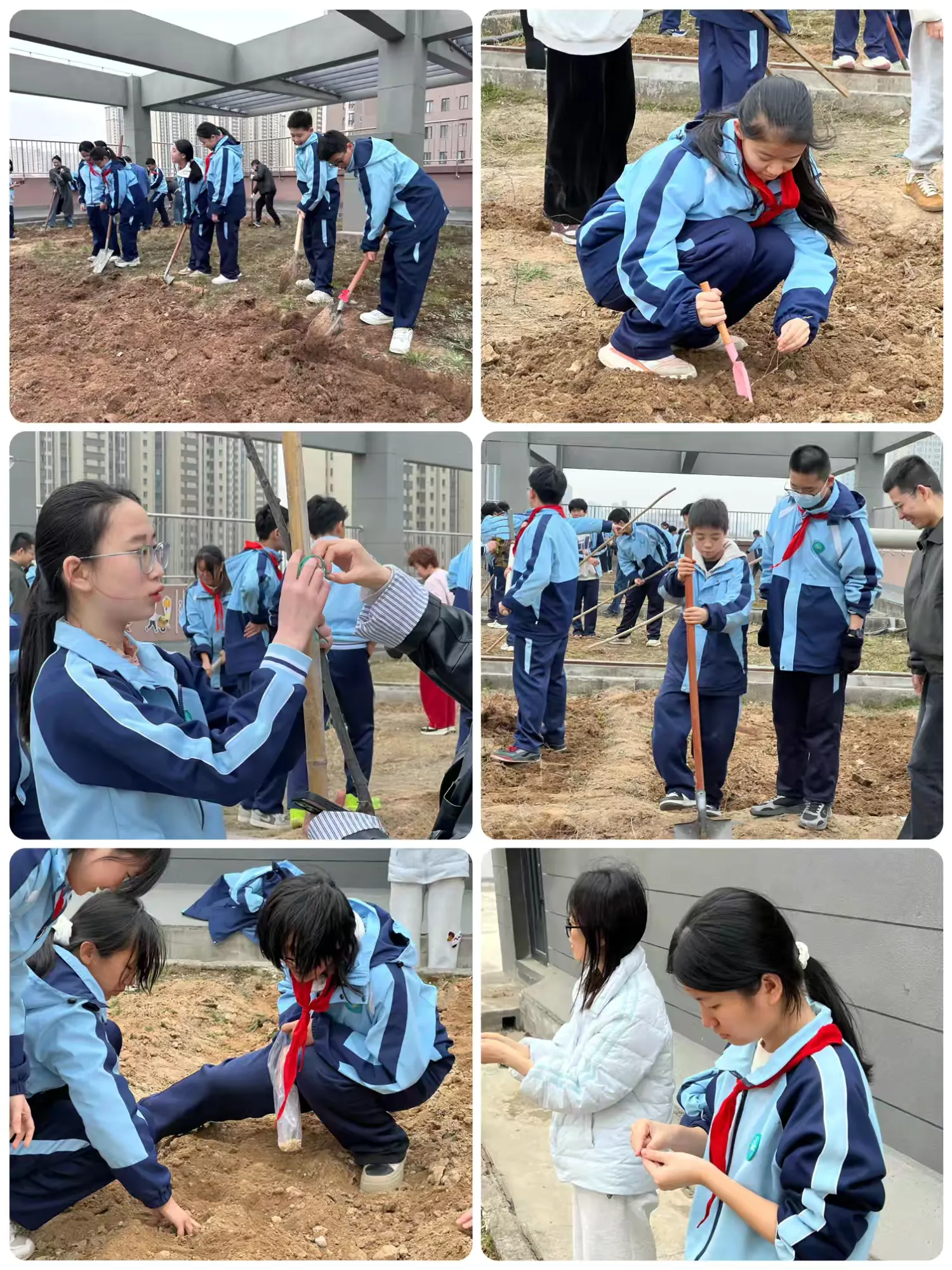 在老师的带领下,各班确定了自己的“责任田”。同学们热情高涨,分工合作,有的挥锹铲土,有的扶苗填坑,亲身感受劳动带来的快乐和成就感。