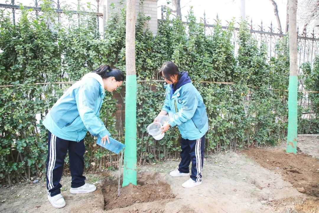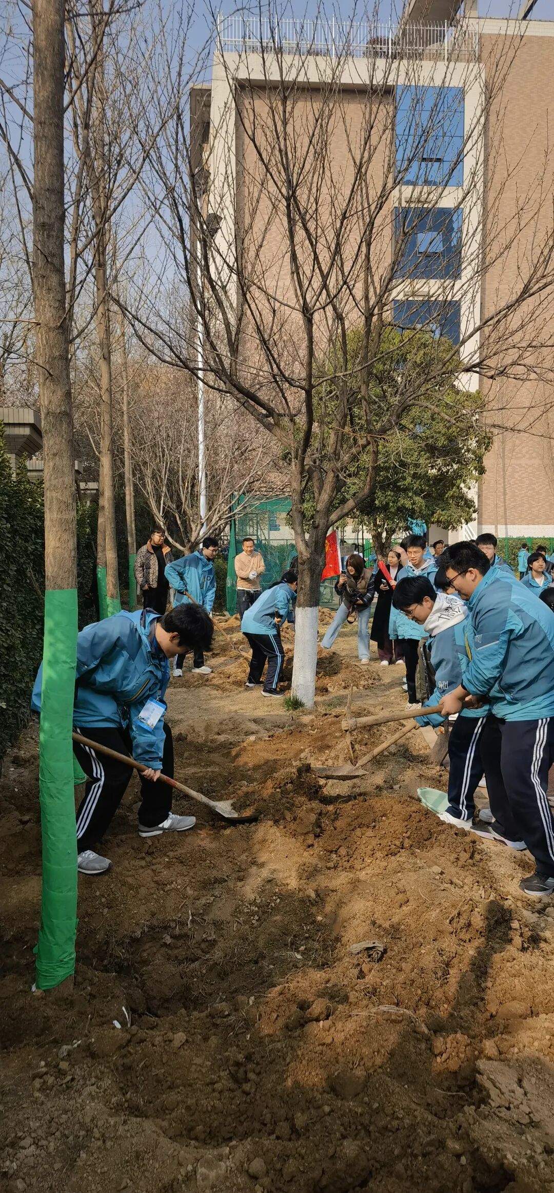 一株株新苗迎风扎根,一抹抹绿意点缀校园;一次次躬身践行,一份份文明担当悄然生长。此次植树节主题实践活动,不仅为校园增添了盎然生机,美化了校园生态环境,更让学生在劳动实践中体悟 “一分耕耘、一分收获” 的真谛,深刻领悟植树造林、守护绿色的重要意义,进一步筑牢生态环保理念与文明担当意识,让文明礼貌、绿色低碳成为青春的鲜明底色。