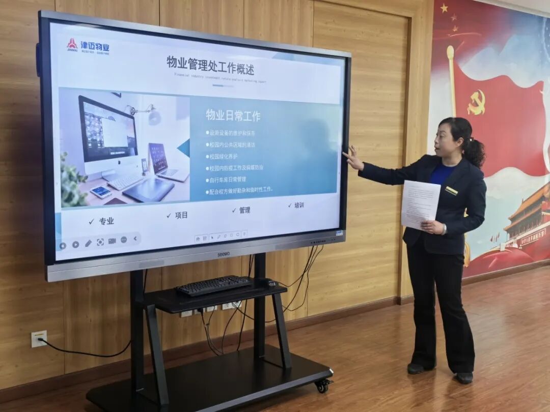 为确保新学期后勤工作有序推进,物业王庆经理、食堂金景经理、学生公寓管理员秦涛教官依次发言。三位负责人分别全面复盘了上学期后勤各板块工作的成效与不足,深入分析了工作中存在的问题,并详细解读了新学期各岗位的工作计划、工作目标与重点任务。