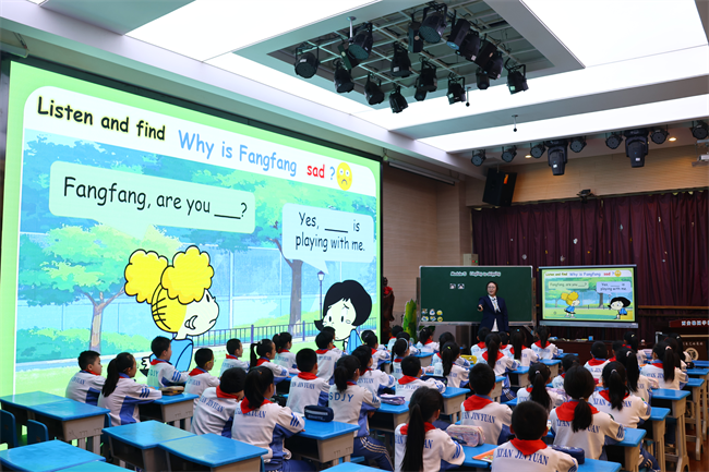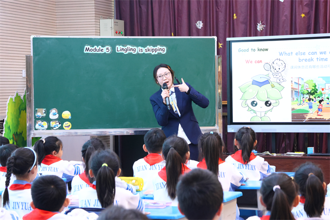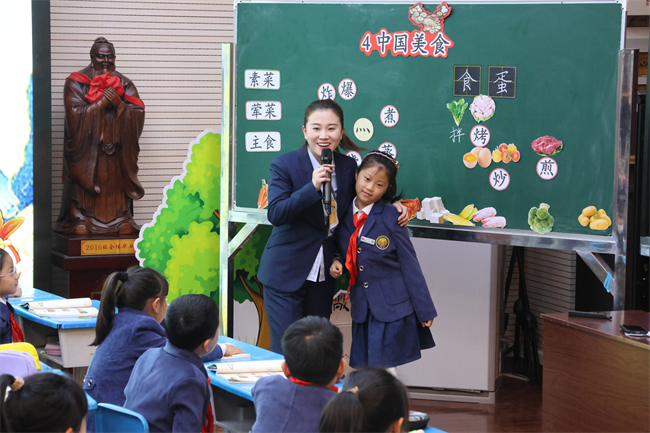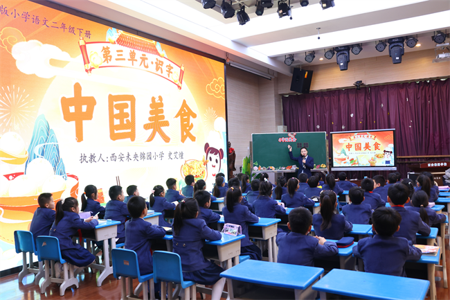 小学部同步开展交流活动,片区教研共同体成员校教师应邀参与。活动核心为语文、数学、英语三节精品公开课,西安锦园学校充分展示“教师、小先生、AI智能师”三师协同课堂模式。甘学笑老师的英语课融入游戏与AI互动,提升学生语言运用能力;史艾燑老师的语文课结合哪吒AI智能体与传统美食文化,兼具实用性与文化底蕴;任娜老师的数学课以趣味探究为主线,彰显生本课堂魅力。