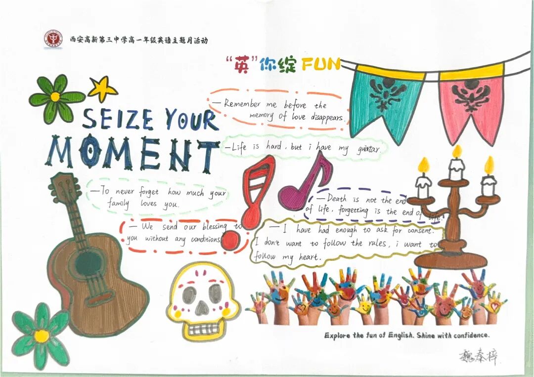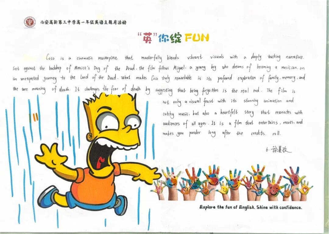 手抄报方寸之间,容纳的是广阔的世界。诗歌的韵律、读后感的深思、电影推荐的热忱……图文并茂,设计精巧,英文书写流畅优美。这不仅是语言的练习,更是跨文化视野的延伸,审美能力的绽放。