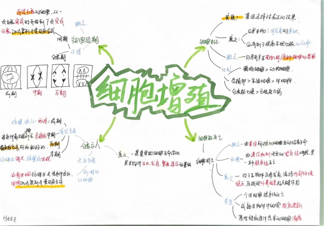 光合作用的能量流转、细胞呼吸的物质循环、细胞增殖的生命律动……同学们用思维导图描绘生命的密码,将复杂的生理过程梳理得井然有序。微观世界的奇妙,在笔下生动呈现,生物学的美感与逻辑交相辉映。