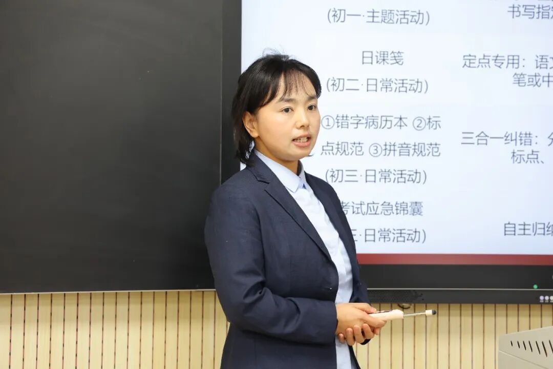课题组成员吴俏枝、李丹青、马鹏飞老师在汇报中直言,当前初中书写教学存在与生活应用、思维发展、文化教育“三重脱节”的困境。对此,课题组创新性地构建了“四维一体”活动体系(审美浸润、工具运用、文化理解、创意表达),致力于跳出“就书写谈书写”的传统视角。