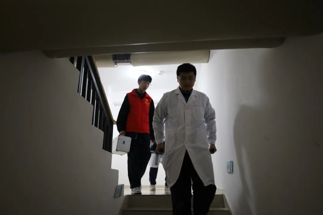 本次演练还特别增设了医疗救护模拟环节。演练预设一名学生在疏散过程中“不慎扭伤”,校医室医疗救护组闻讯后,迅速携带担架和急救箱赶到“事发地点”,对“伤员”进行专业的伤情评估和包扎处理,并用担架将其安全转运至医疗点。