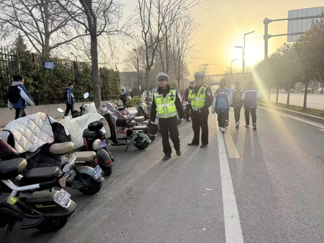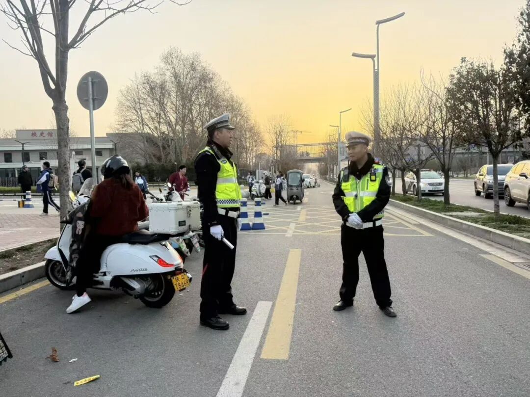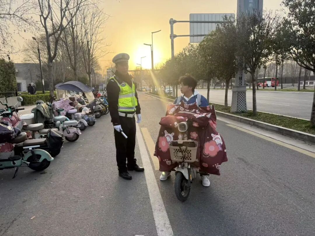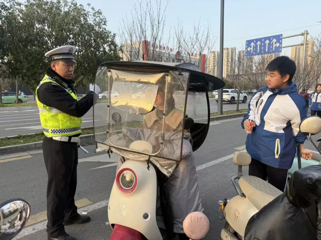 活动在庄严升旗仪式中开启,交警与学校工作人员随即对骑乘电动车学生开展头盔专项检查,细致核查头盔合规性与佩戴规范性,现场记录汇总结果。