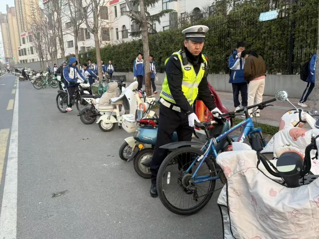王涛副校长感谢交警同志的现场指导,强调头盔是骑行“生命铠甲”,要求师生规范行为、互相监督,家校警携手打造安全交通环境。