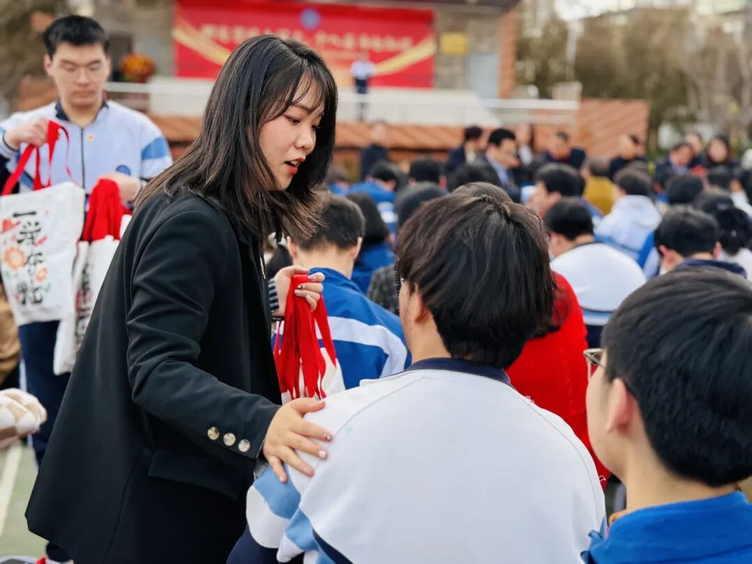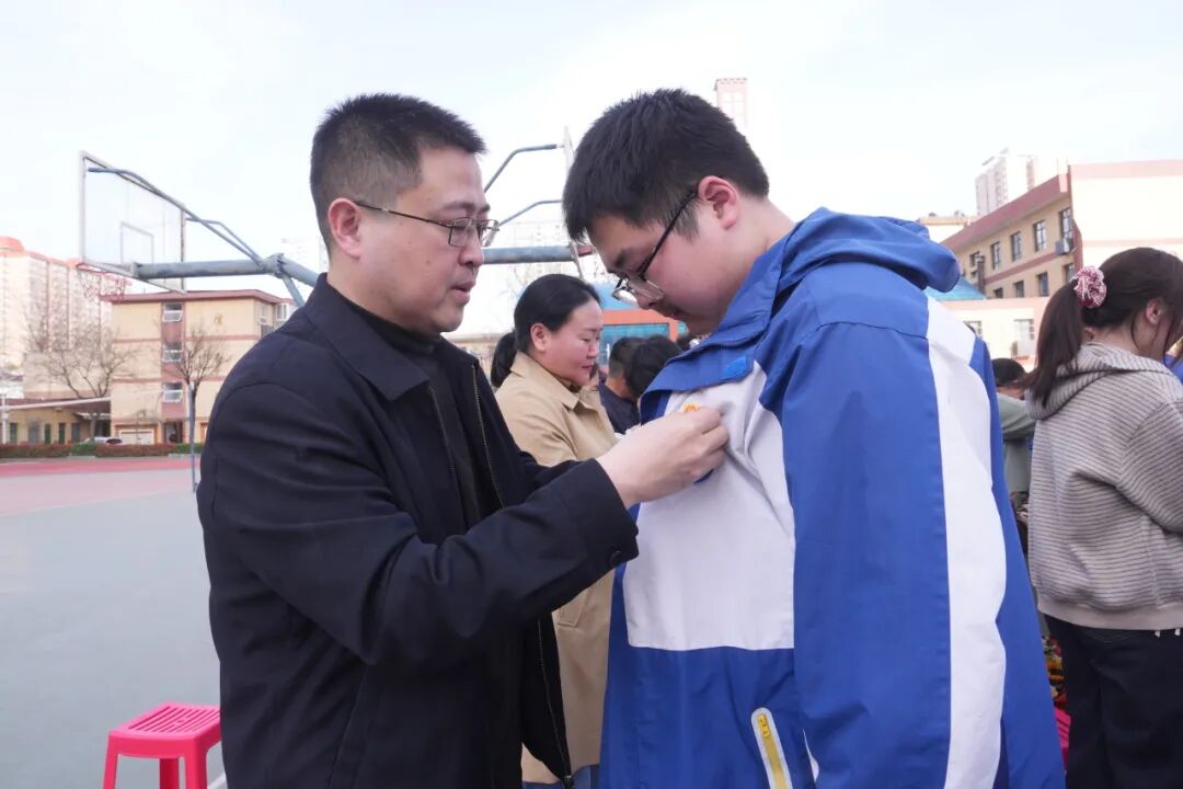 活动现场,每一位学子郑重佩戴上了象征着“追逐阳光、积极向上”的向日葵勋章。这枚勋章,寓意着同学们像向日葵一样,永远追随光明,坚定理想,绽放属于自己的青春光芒。