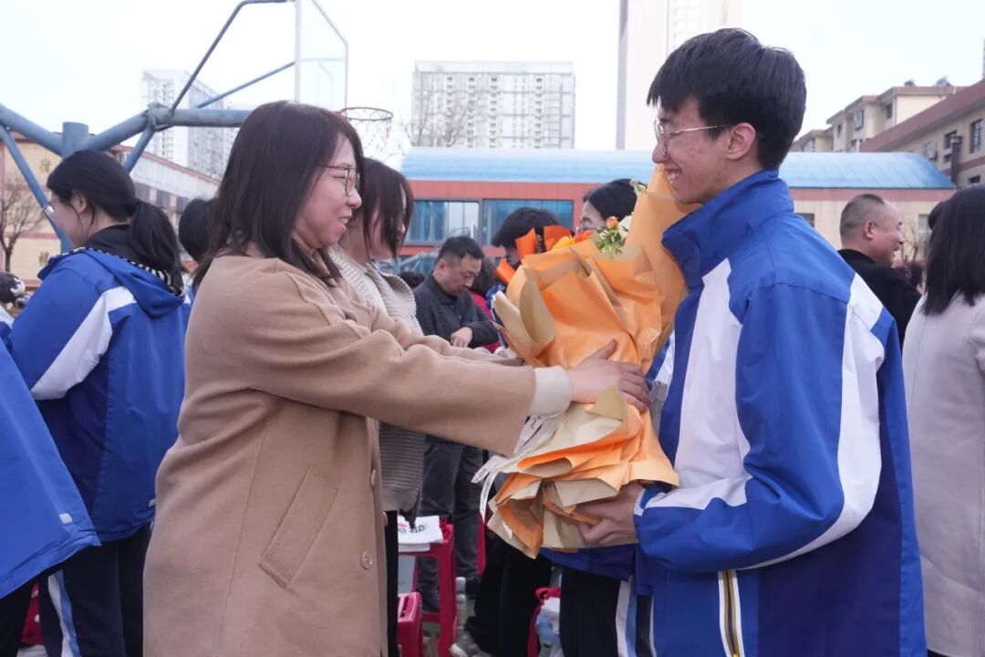 学子代表手捧芬芳鲜花,缓步走向恩师,深深鞠躬,献上最诚挚的感谢,花香萦绕间,是师生情谊的美好定格,是少年们对师恩的铭记于心。一束鲜花,一声“老师您辛苦了”,道尽了师生间深厚的情谊。