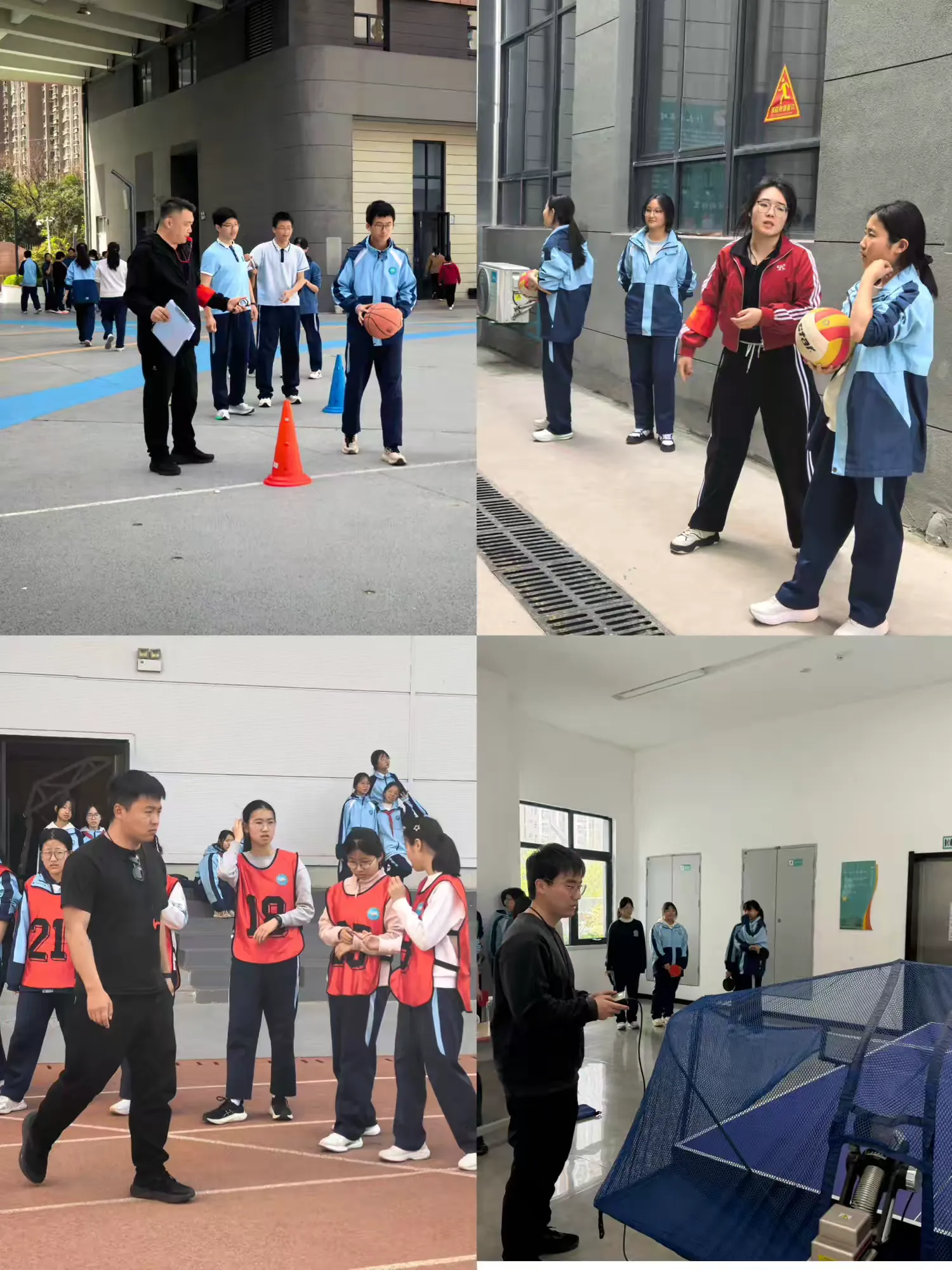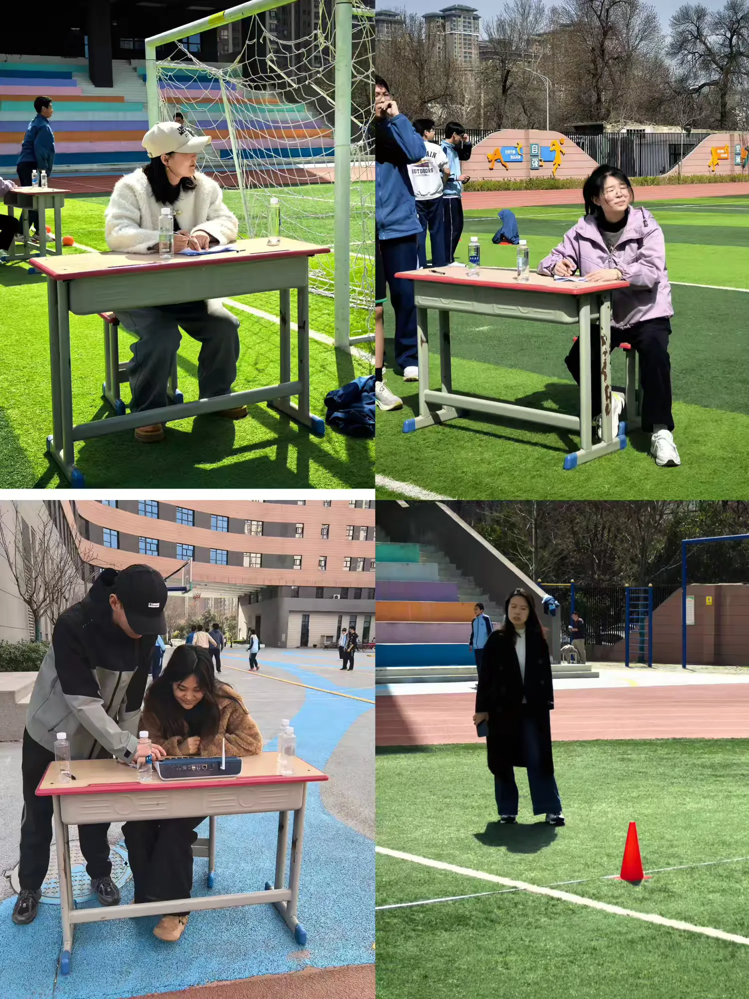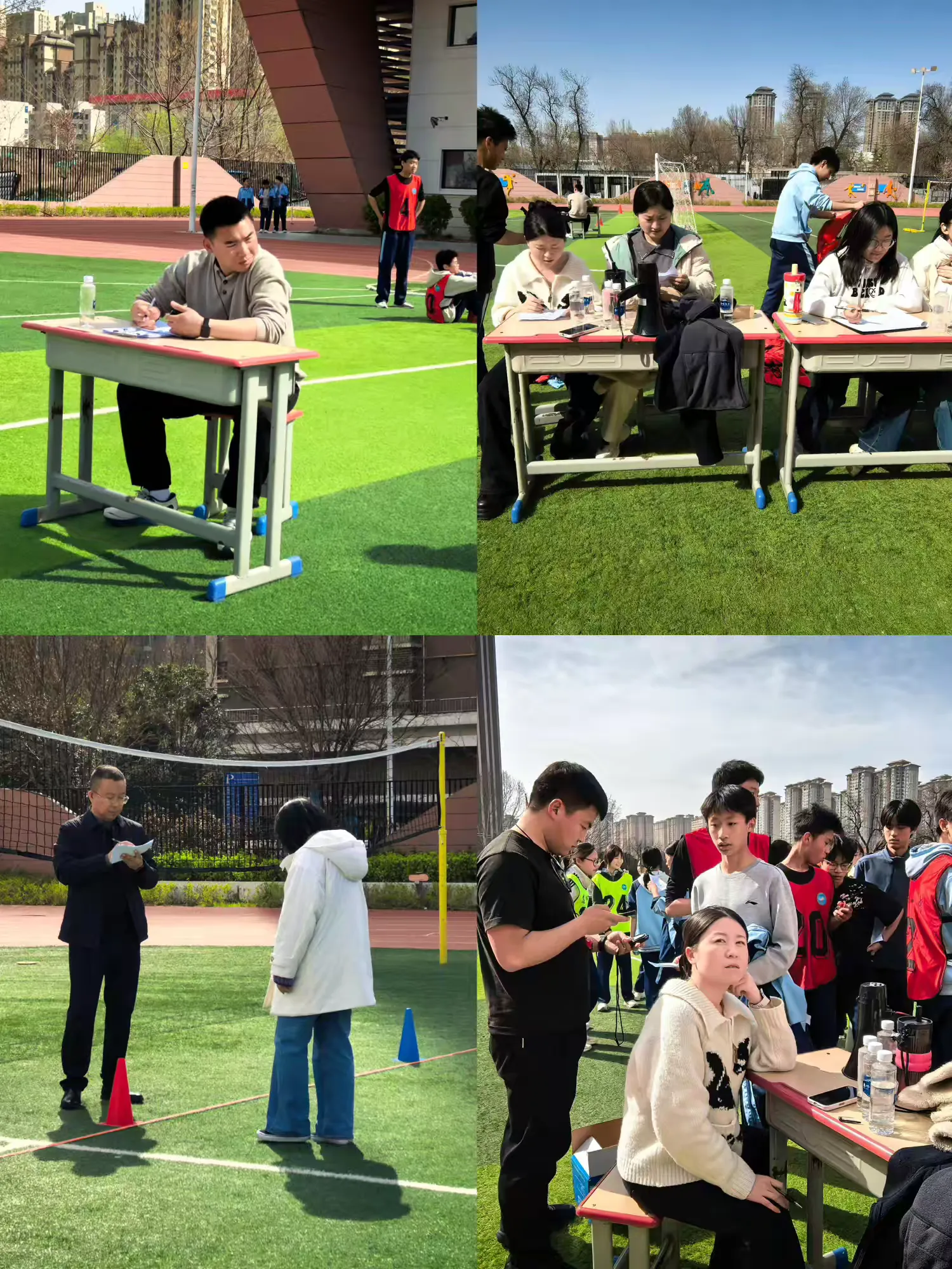 测试前,初三年级组和体育组教师团队制定了详细方案,明确各项目流程与人员分工。测试当天,操场划分出不同功能区域,学生按班级有序排队候考,现场秩序井然。教师们在项目测试点、成绩记录区等岗位协作配合,确保测试高效推进。