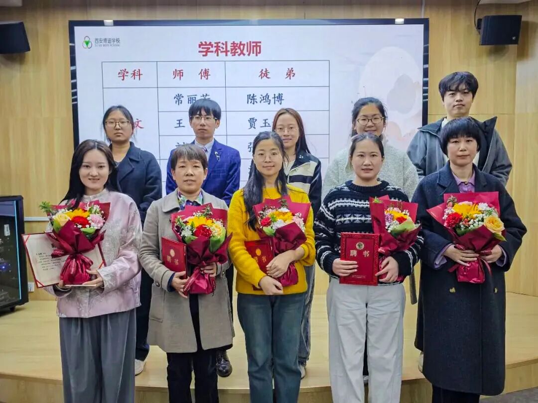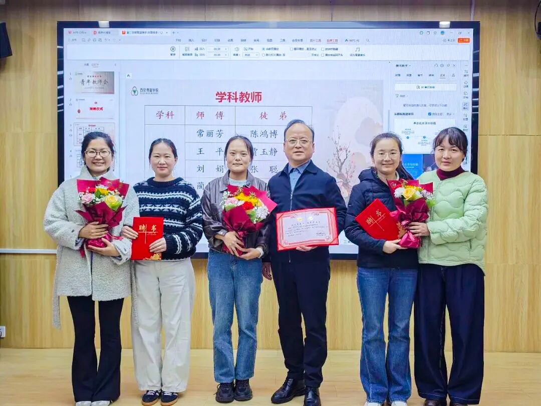 随后,各学科、班主任师徒依次登台结对,校领导为师傅颁发聘书,青年徒弟向师傅鞠躬献花,以传统礼仪缔结师徒情谊,让“传帮带”的教育精神落地生根。