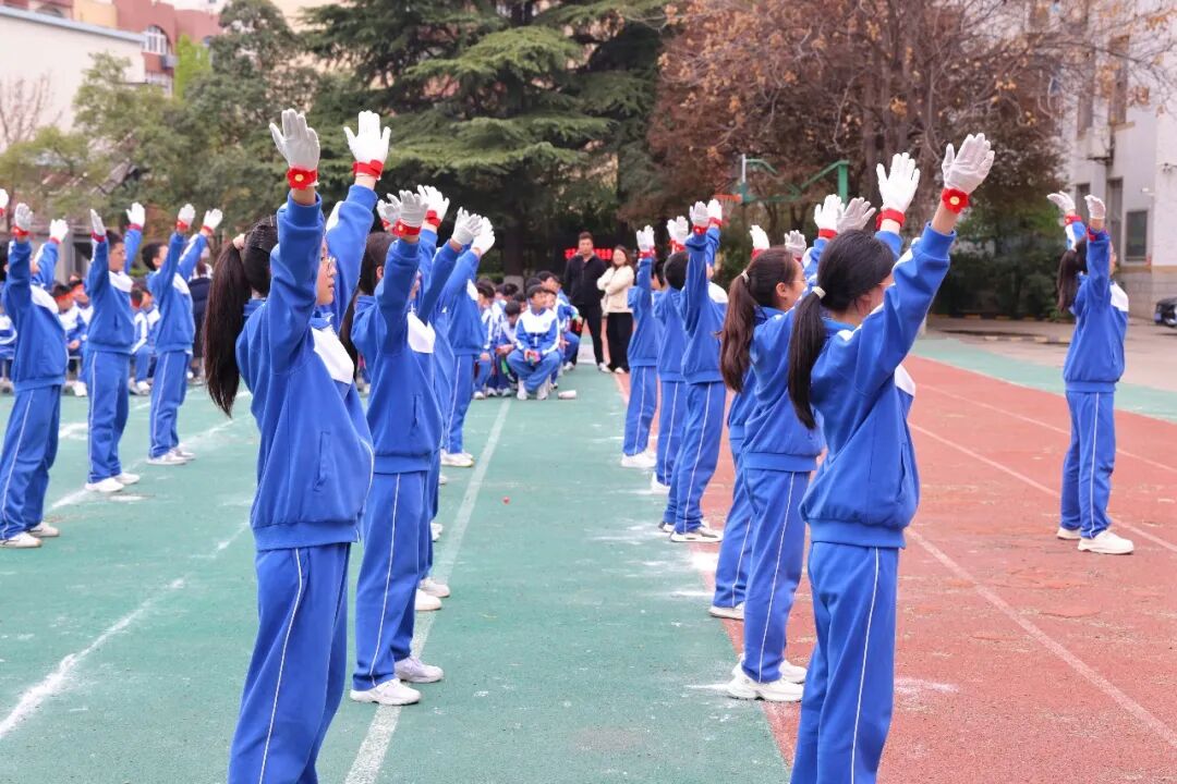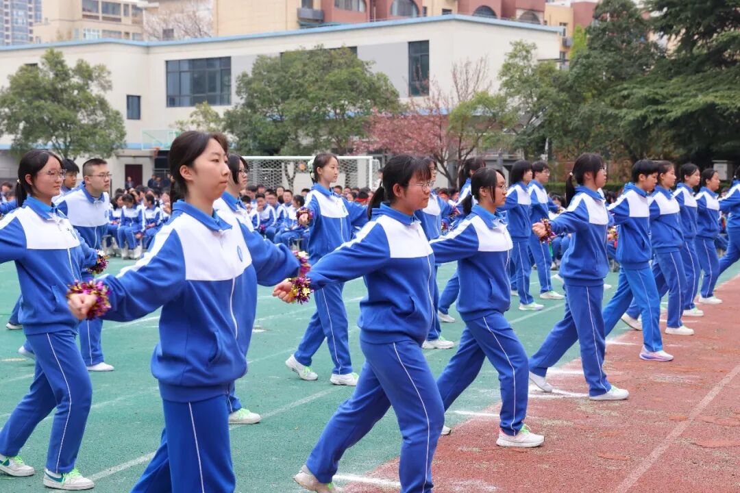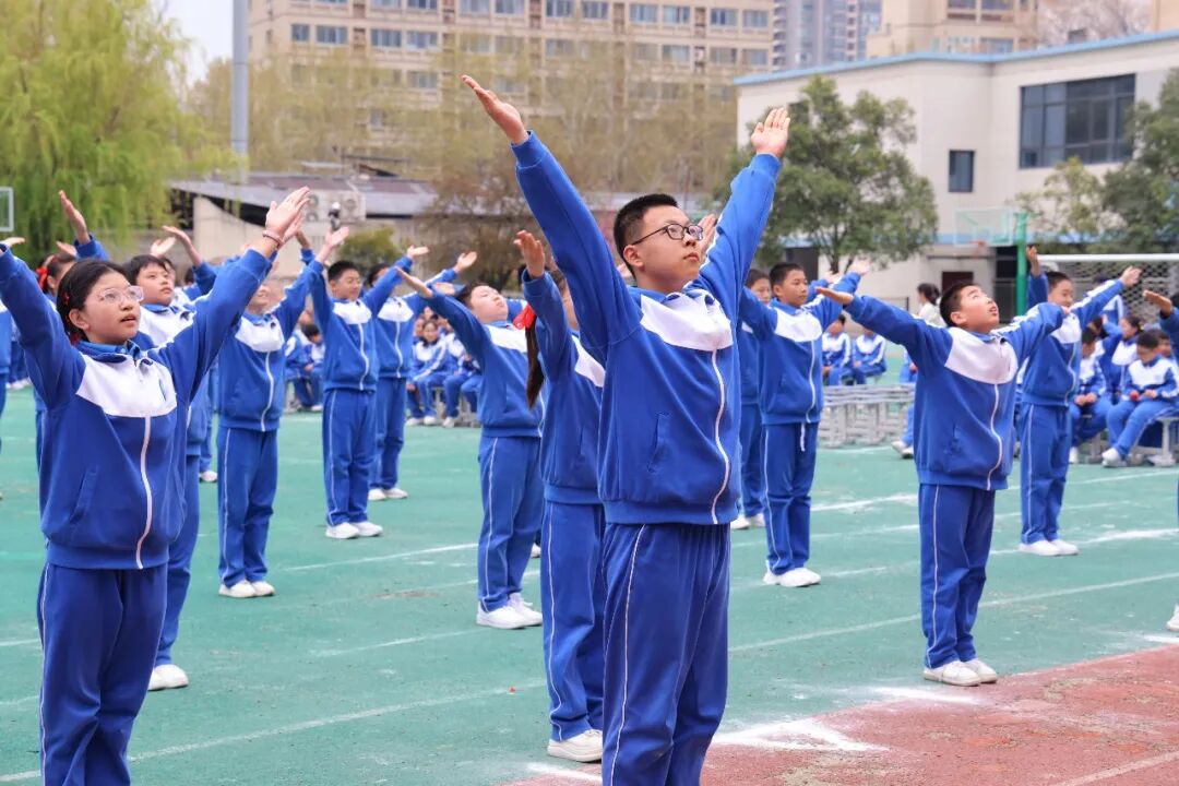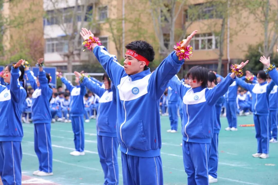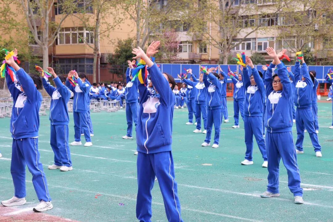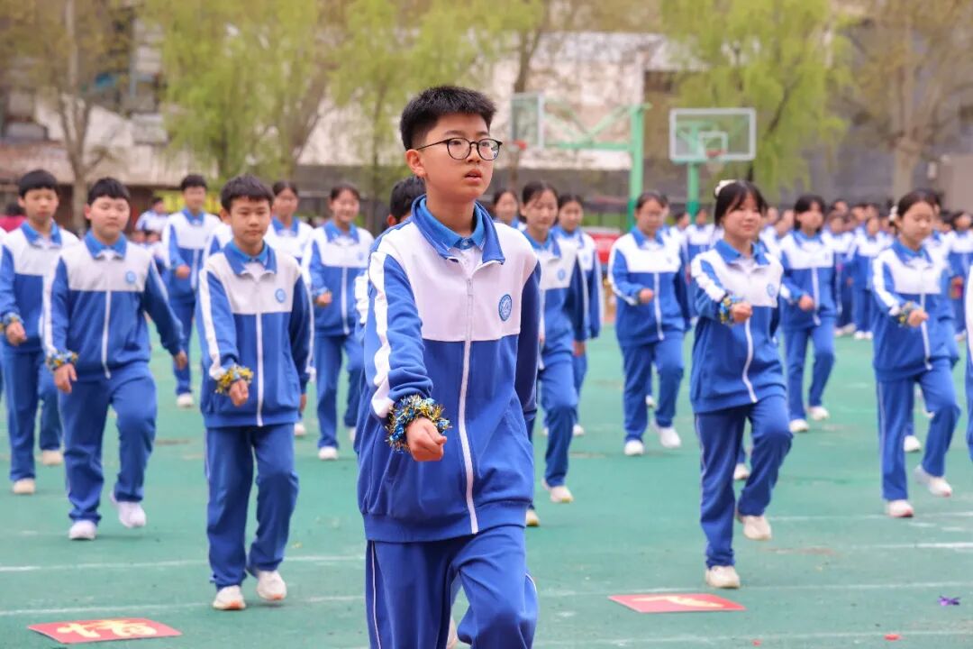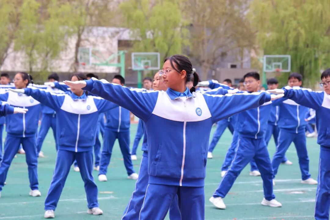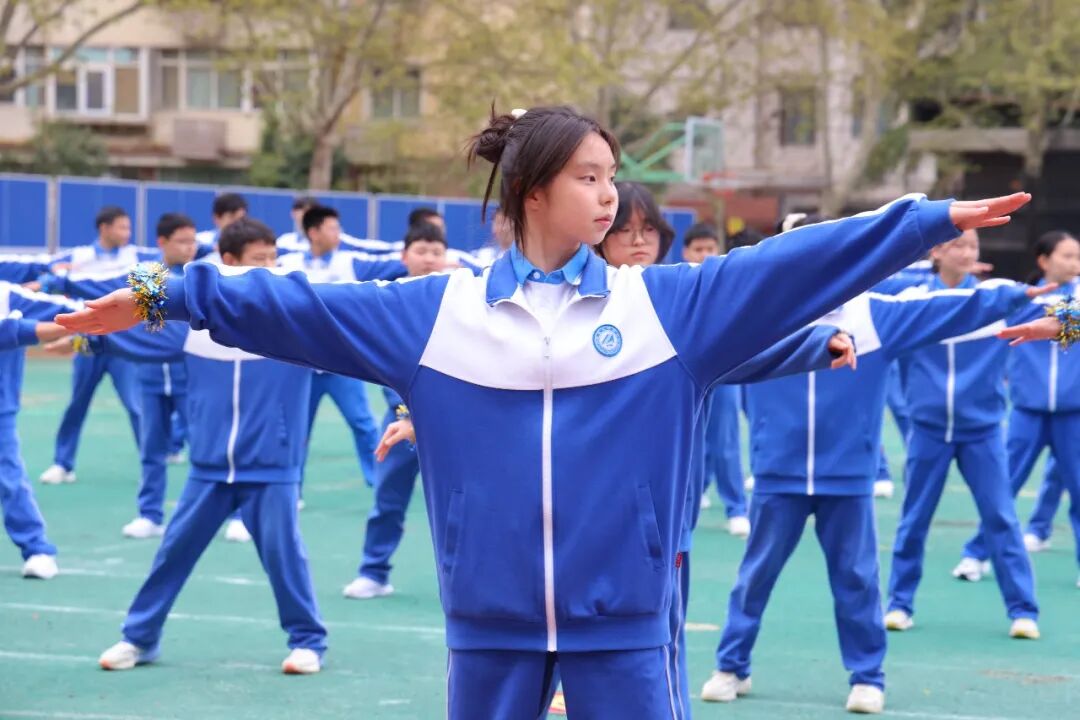 初一、高一年级全体学子以班为阵、以操为语,在阳光赛场之上,用标准的动作、昂扬的姿态,诠释青春的蓬勃力量,演绎集体的同心之美。