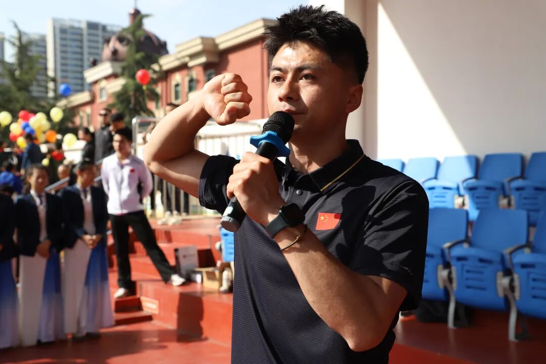 西安外事学院理事,西安藤信学校、西安藤信高级中学理事长郭栋致辞,他致谢各界支持,强调体育的育人价值与学校体育工作成果,寄语运动员在赛场突破自我、践行奥林匹克精神,并预祝运动会圆满成功。